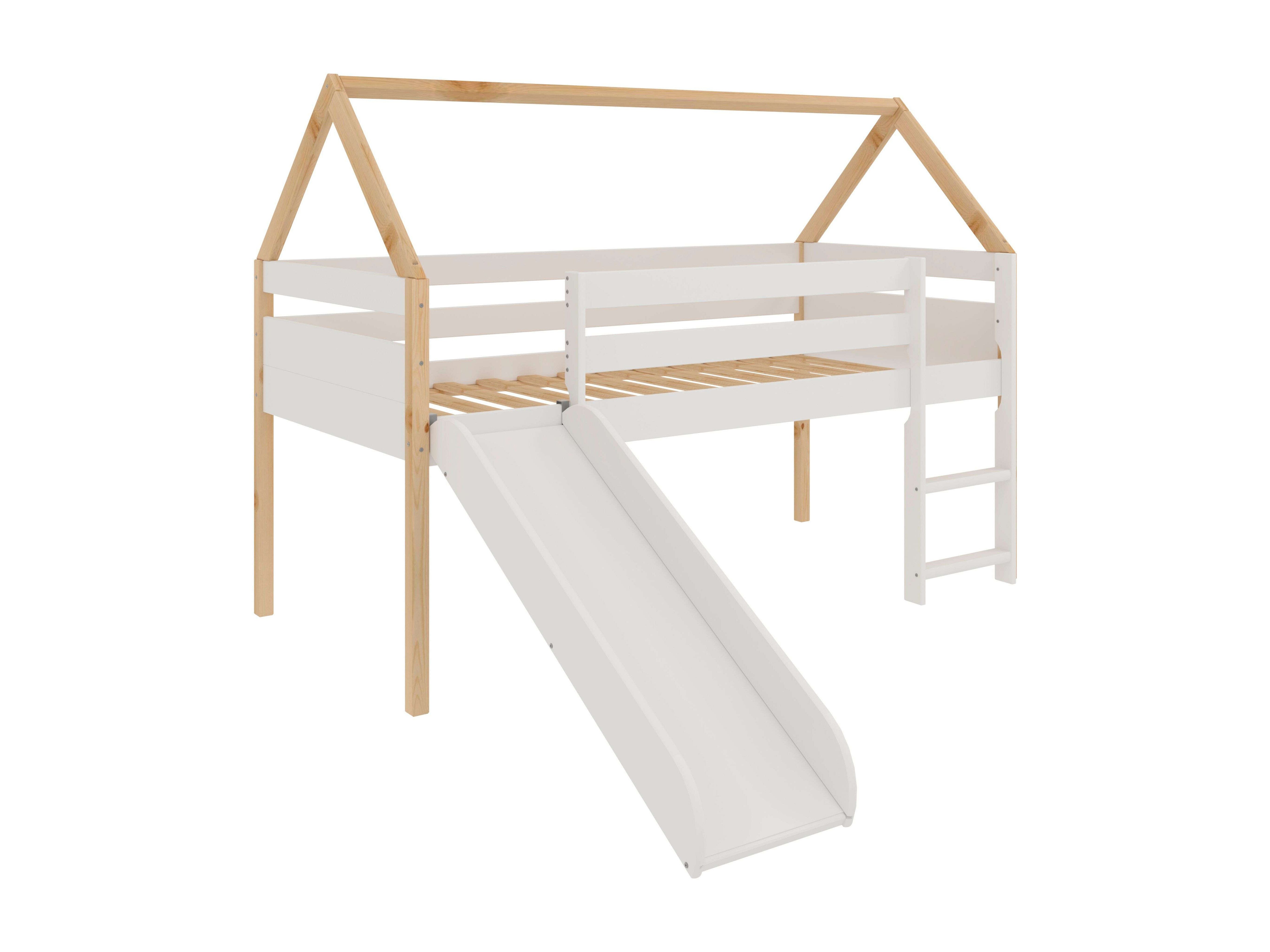 Cama deslizante Logan com escada 140X200X96 Branco-Natural