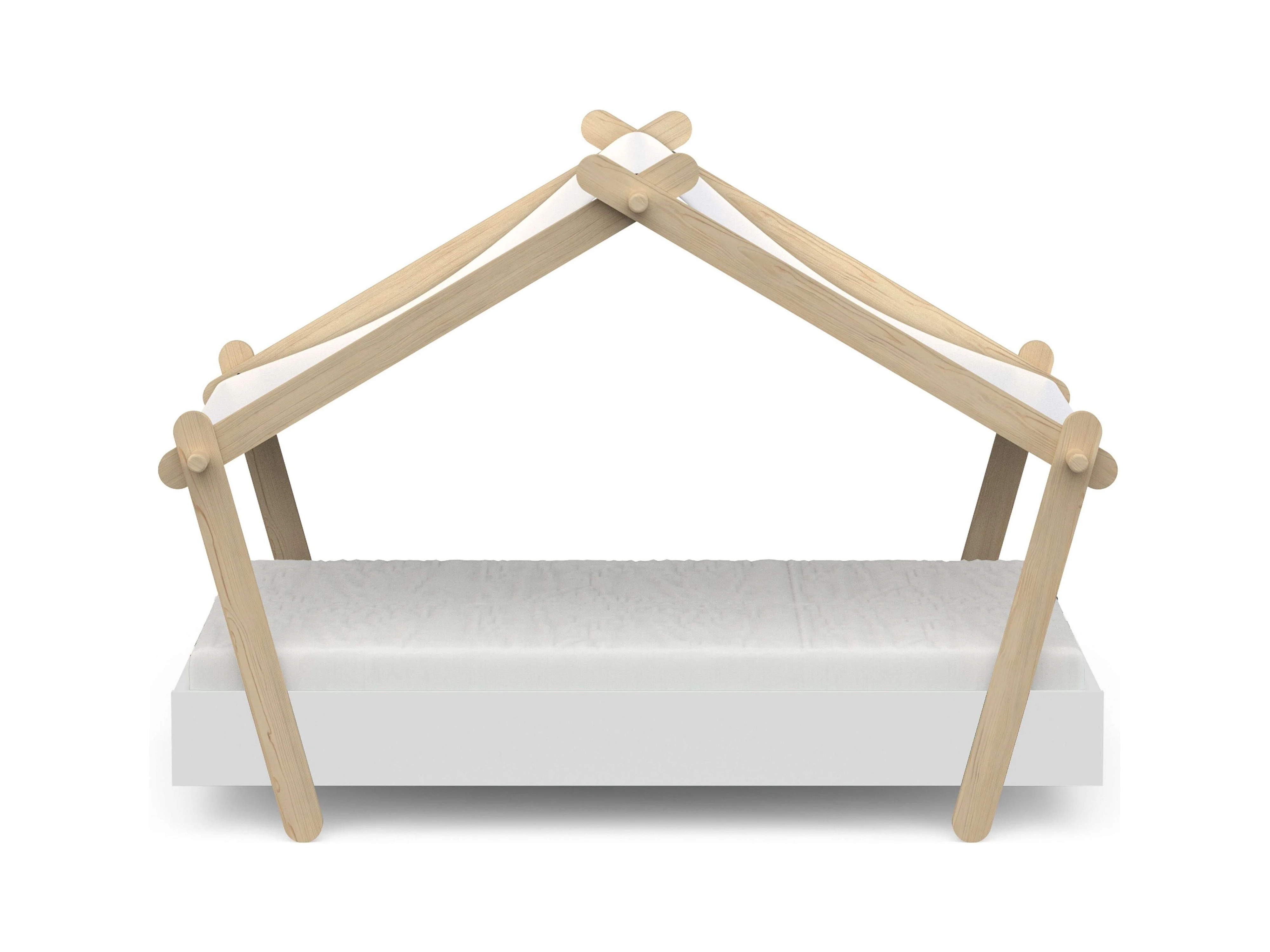 Cama Infantil Lodge 70x140 cm Prateleiras Base de Ripas Carvalho Hamilton Branco