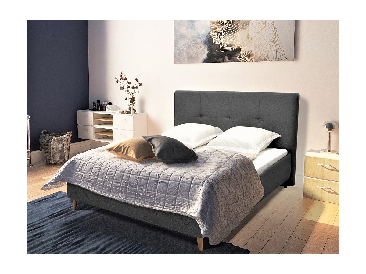 Cama LUCAS com cabeceira acolchoada - 140 x 190 cm - Tecido cinza