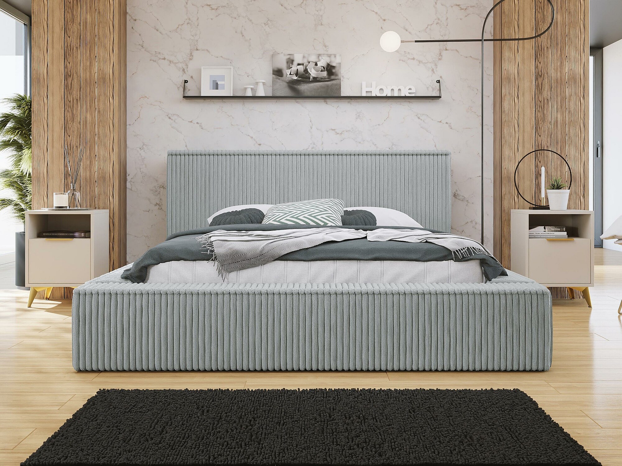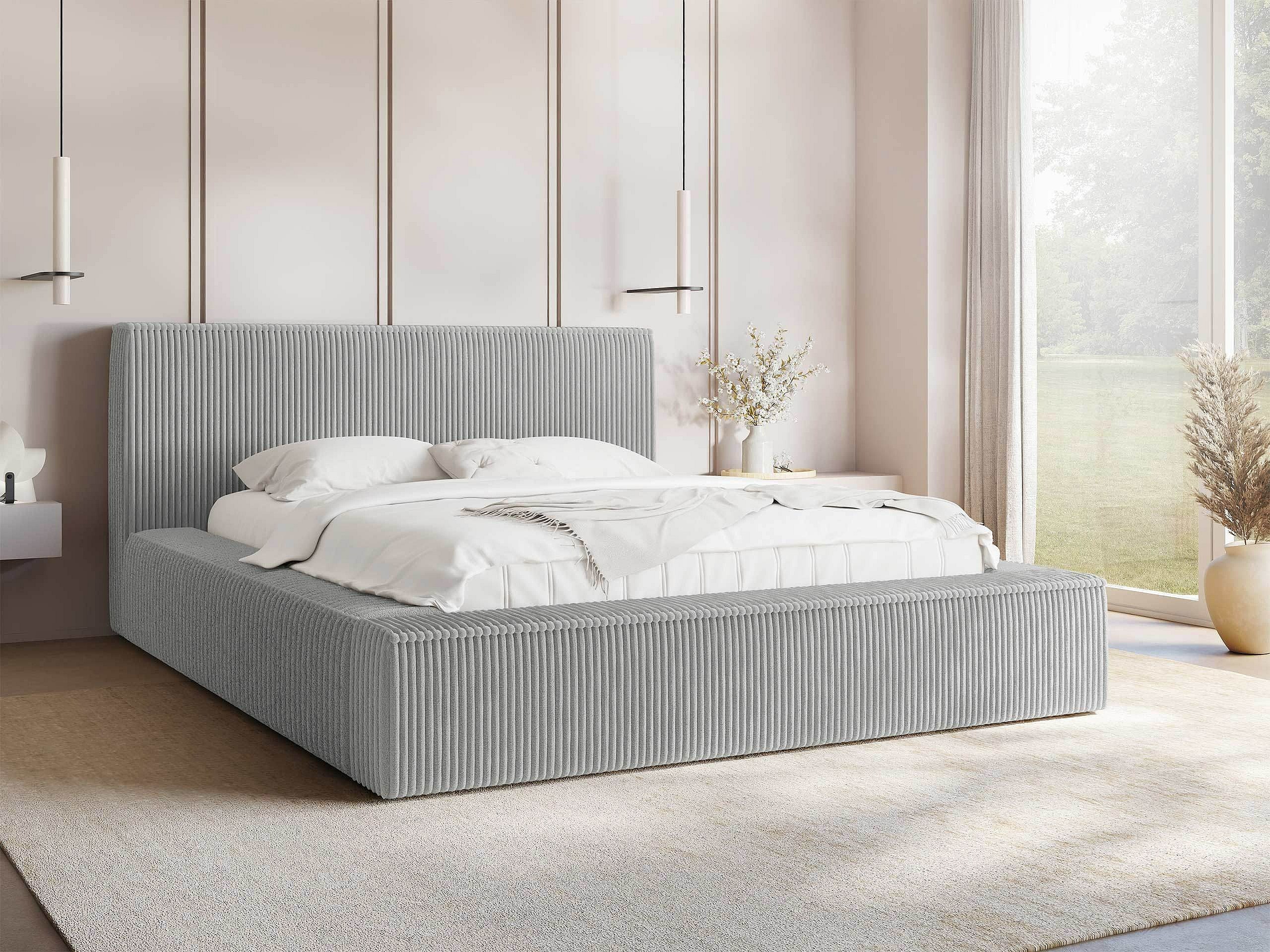 Cama TrendyNest 106, Casal, Cinzento, Tecido, Estrados de cama