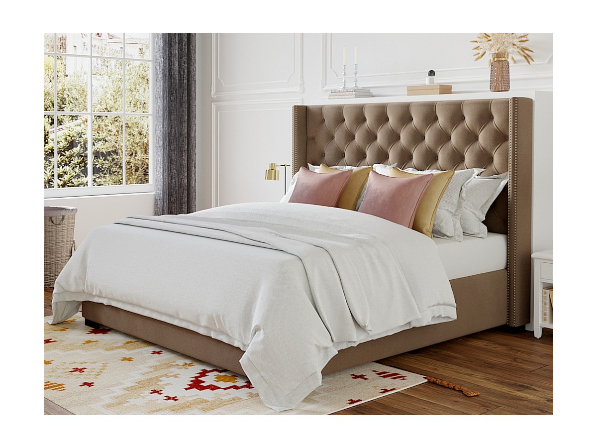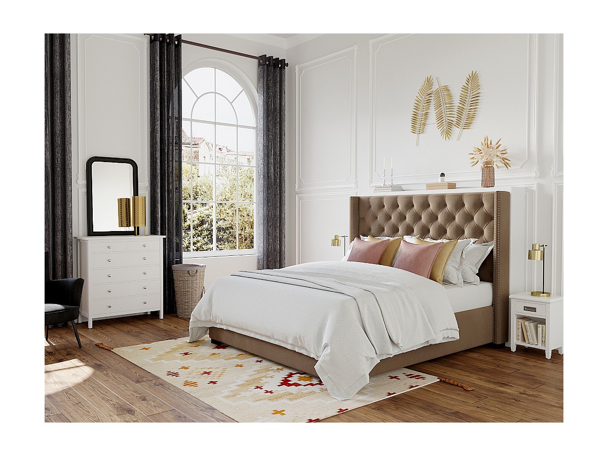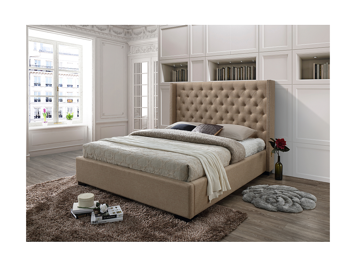 Cama MASSIMO com cabeceira acolchoada - 180 x 200 cm - Tecido bege