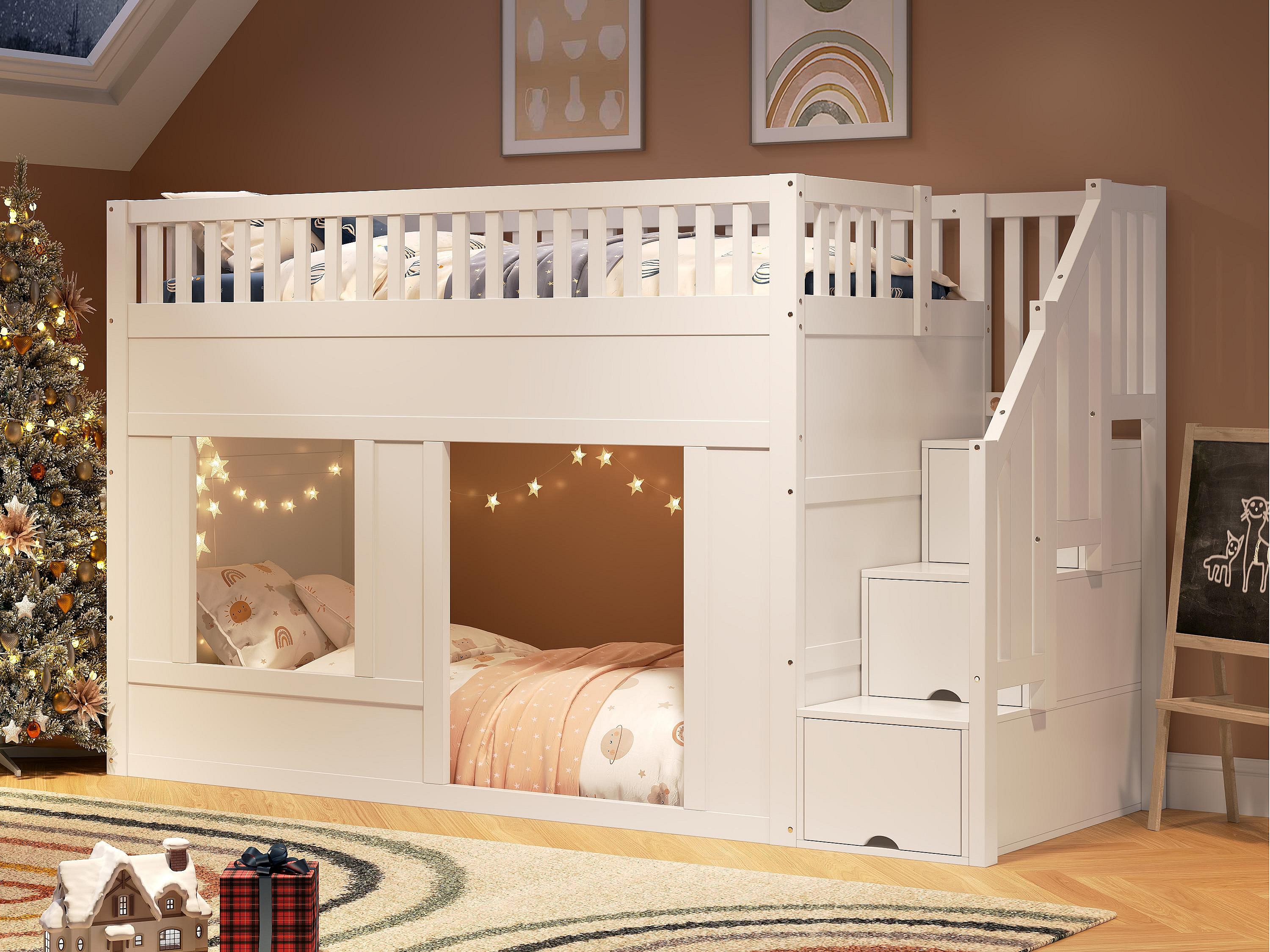 Cama mezanino infantil 90x200 cm - com escada de armazenamento - com proteções de segurança - MDF - Branco (colchão não incluído)
