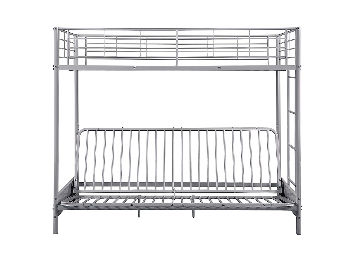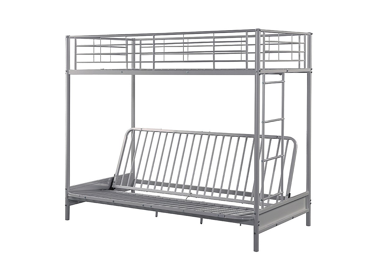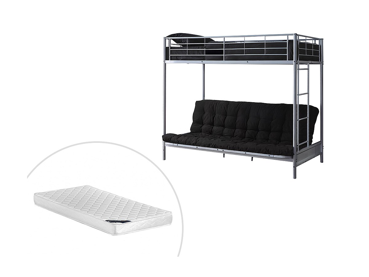 Cama mezzanine 90x190 cm com sofá convertível em metal prateado + Futon + Colchão - MODULO IV