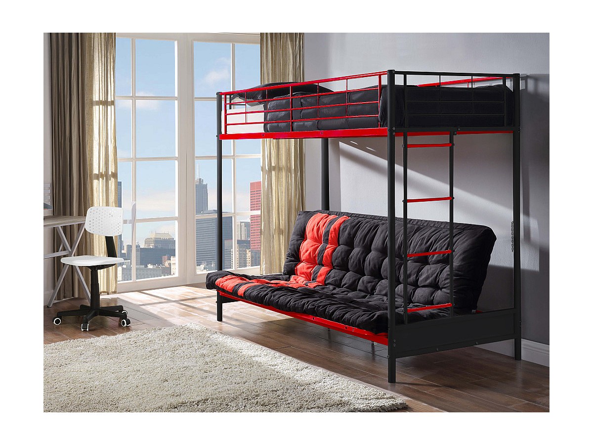 Cama mezzanine 90x190 cm com sofá convertível em metal preto e vermelho + Futon + Colchão - MODULO IV