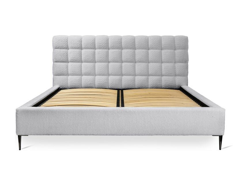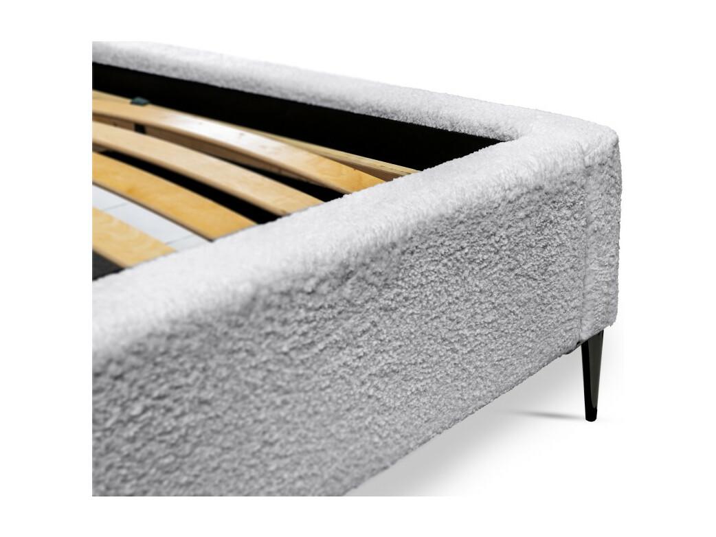 Cama MILLIO – Branca – 140x200 cm – Tecido chenille bouclé – Estrado incluído – Conforto de hotel 5 estrelas