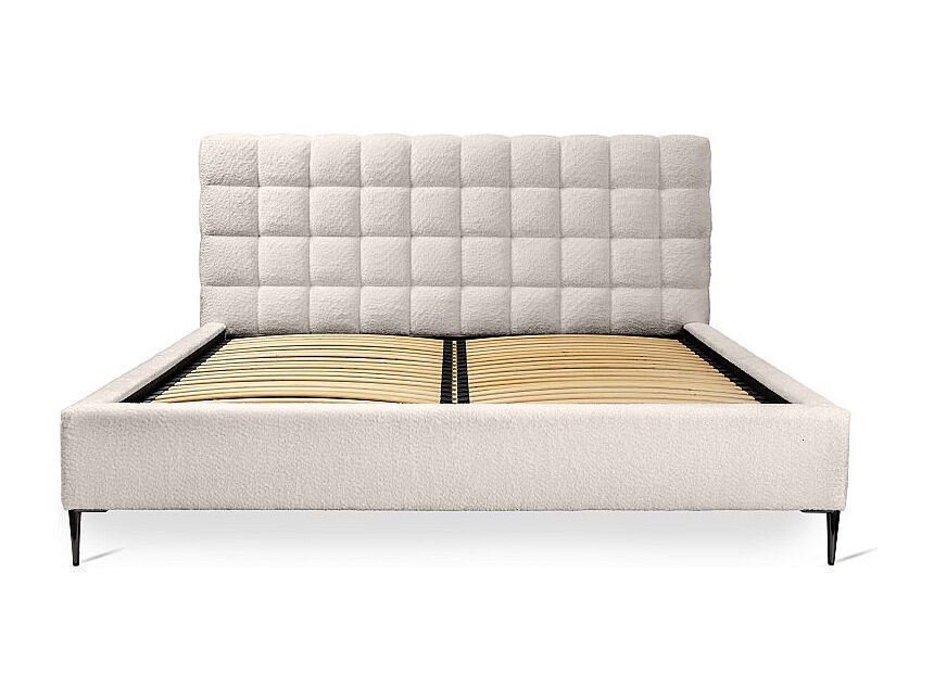 Cama MILLIO – Creme – 160x200 cm – Tecido chenille bouclé – Estrado incluído – Conforto de hotel 5 estrelas