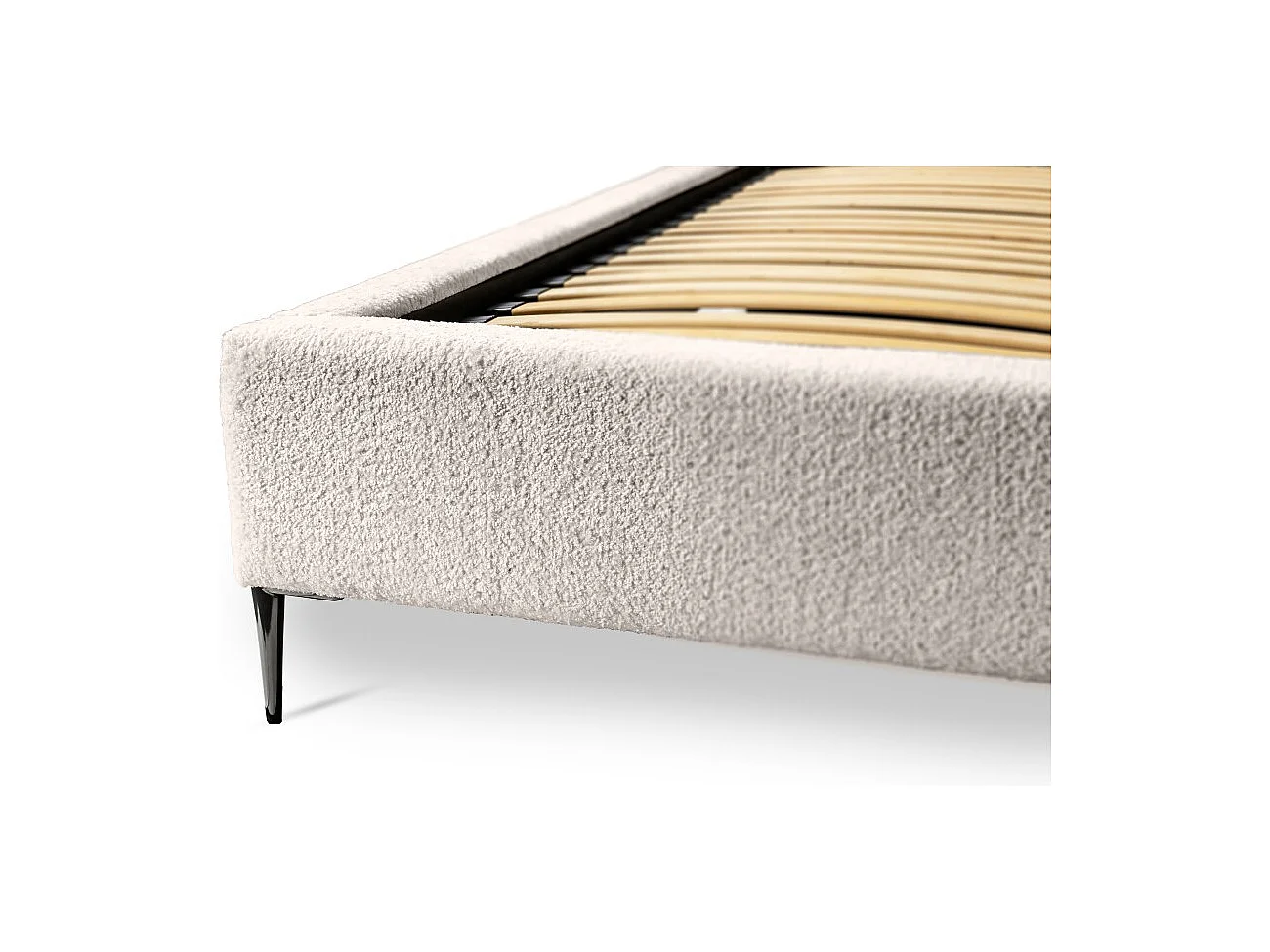 Cama MILLIO – Creme – 180x200 cm – Tecido chenille bouclé – Estrado incluído – Conforto de hotel 5 estrelas