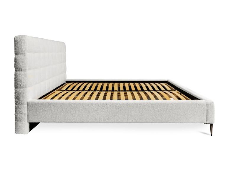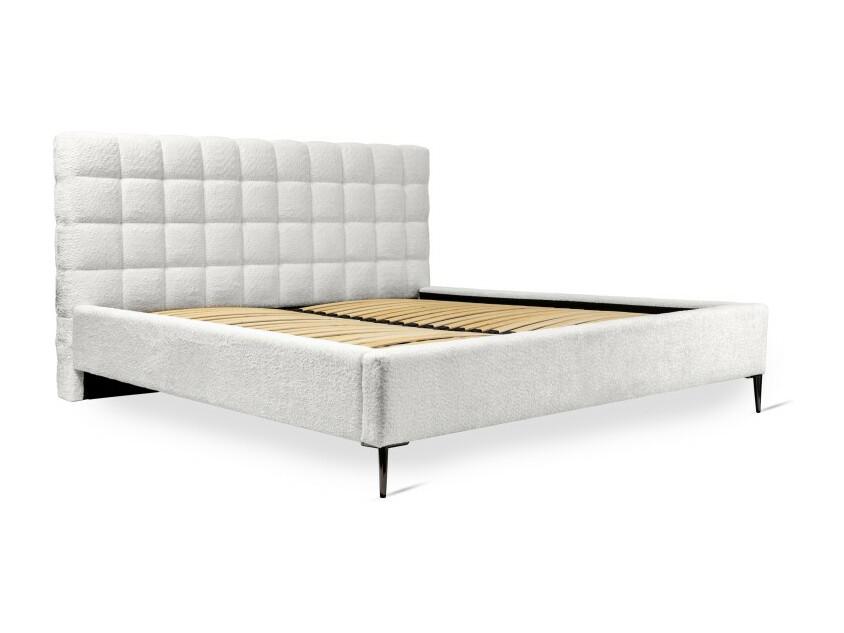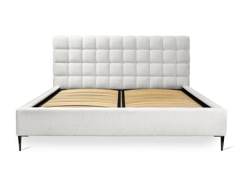 Cama MILLIO – Marfim – 160x200 cm – Tecido chenille bouclé – Estrado incluído – Conforto de hotel 5 estrelas
