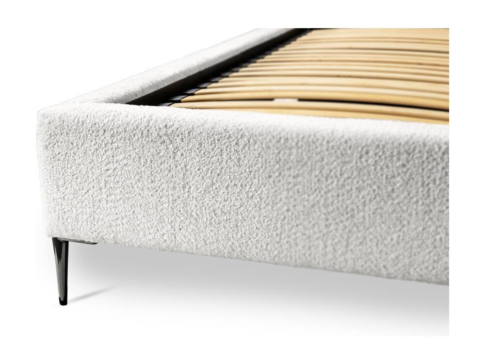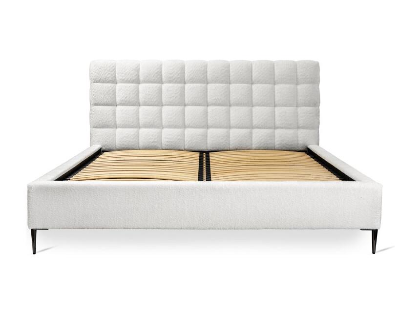 Cama MILLIO - Marfim - 180x200 cm - Tecido chenille bouclé - Estrado incluído - Conforto de hotel 5 estrelas
