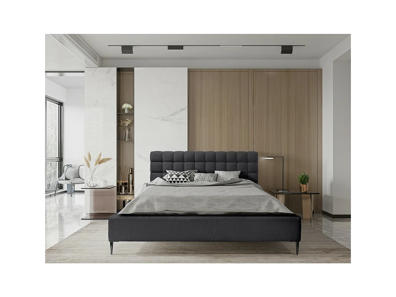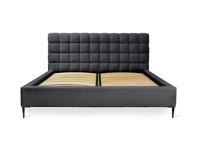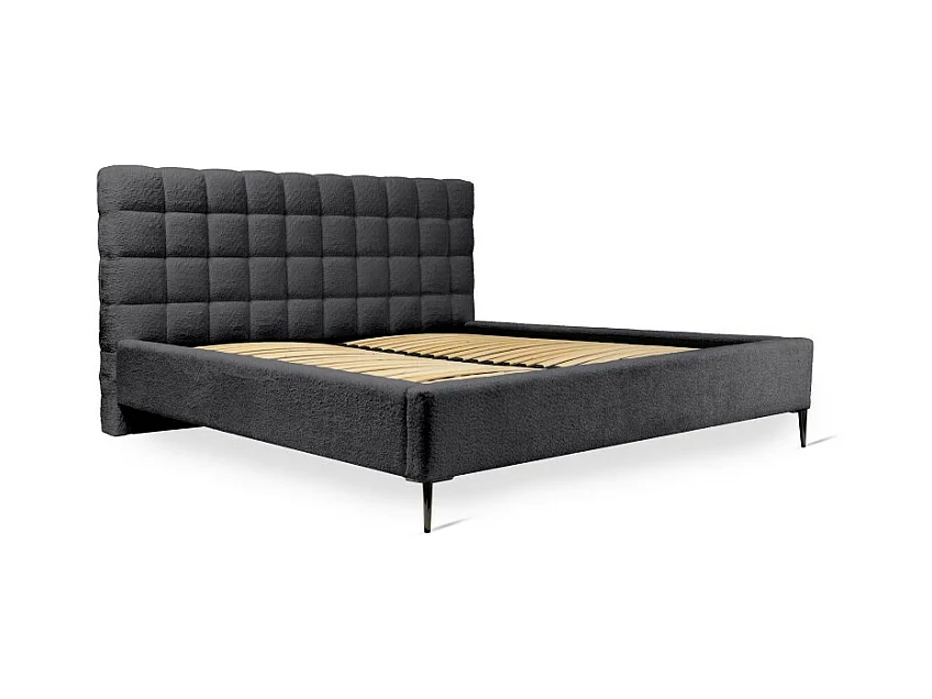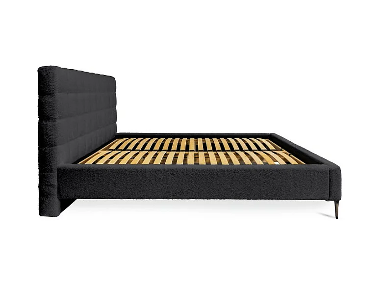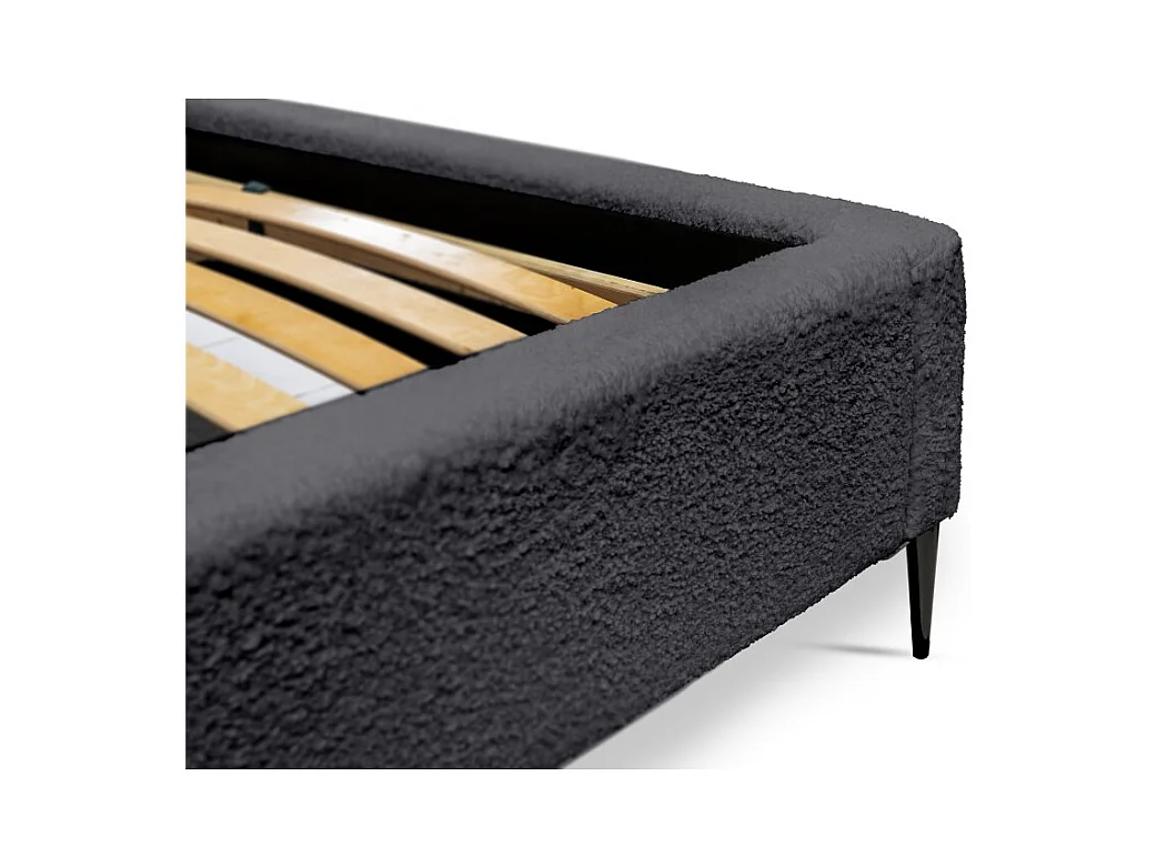 Cama MILLIO - Preta - 180x200 cm – Tecido chenille bouclé - Estrado incluído - Conforto de hotel 5 estrelas
