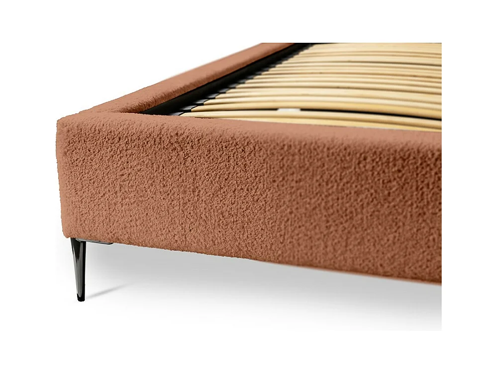 Cama MILLIO - Terracota - 140x200 cm - Tecido chenille bouclê - Estrado incluído - Conforto de hotel 5 estrelas