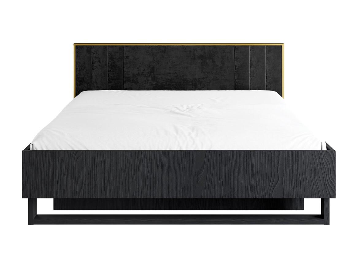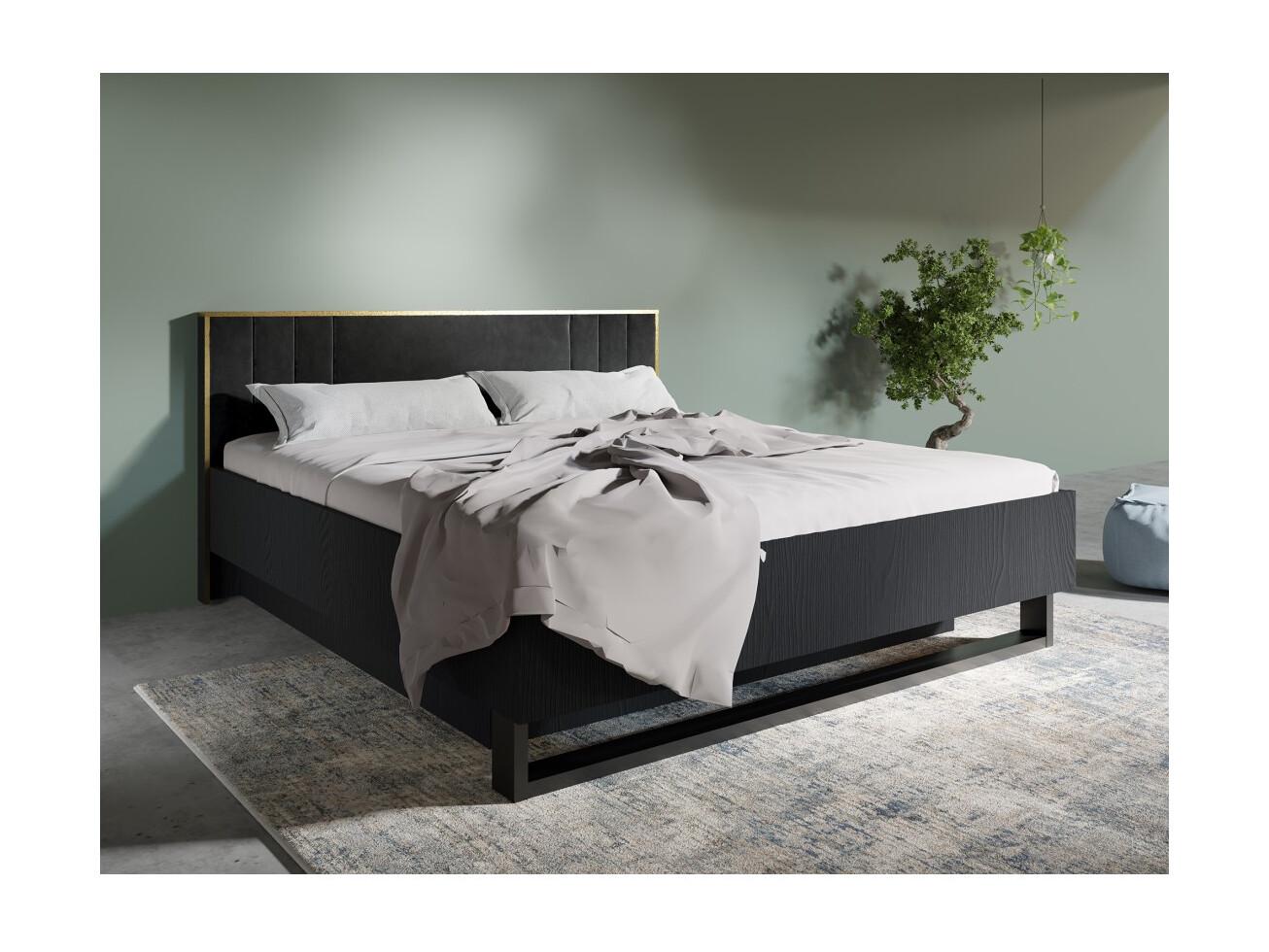 Cama MONDO – 180x200 cm – Preto estruturado e dourado – Pés de metal – Estrado incluído