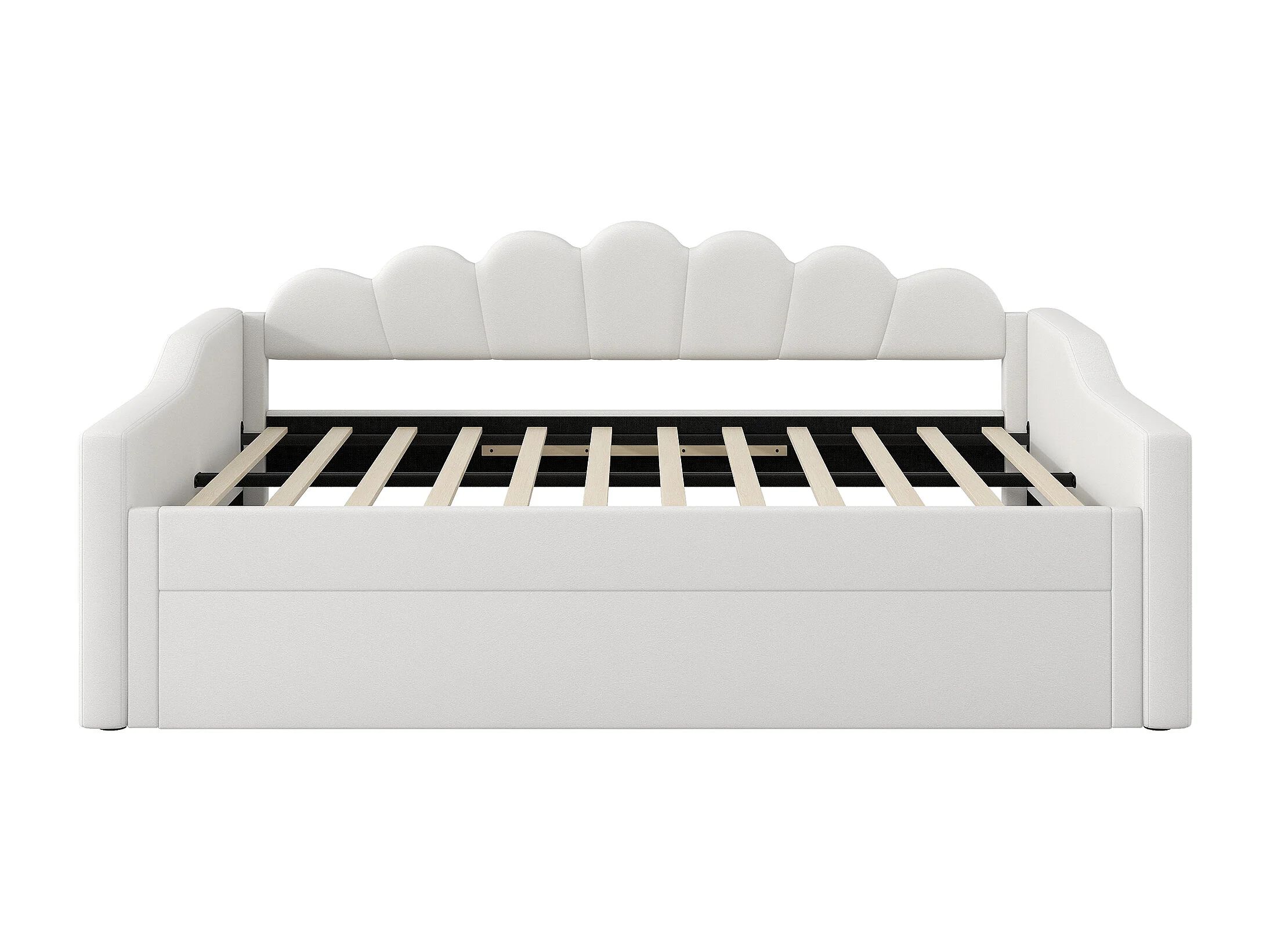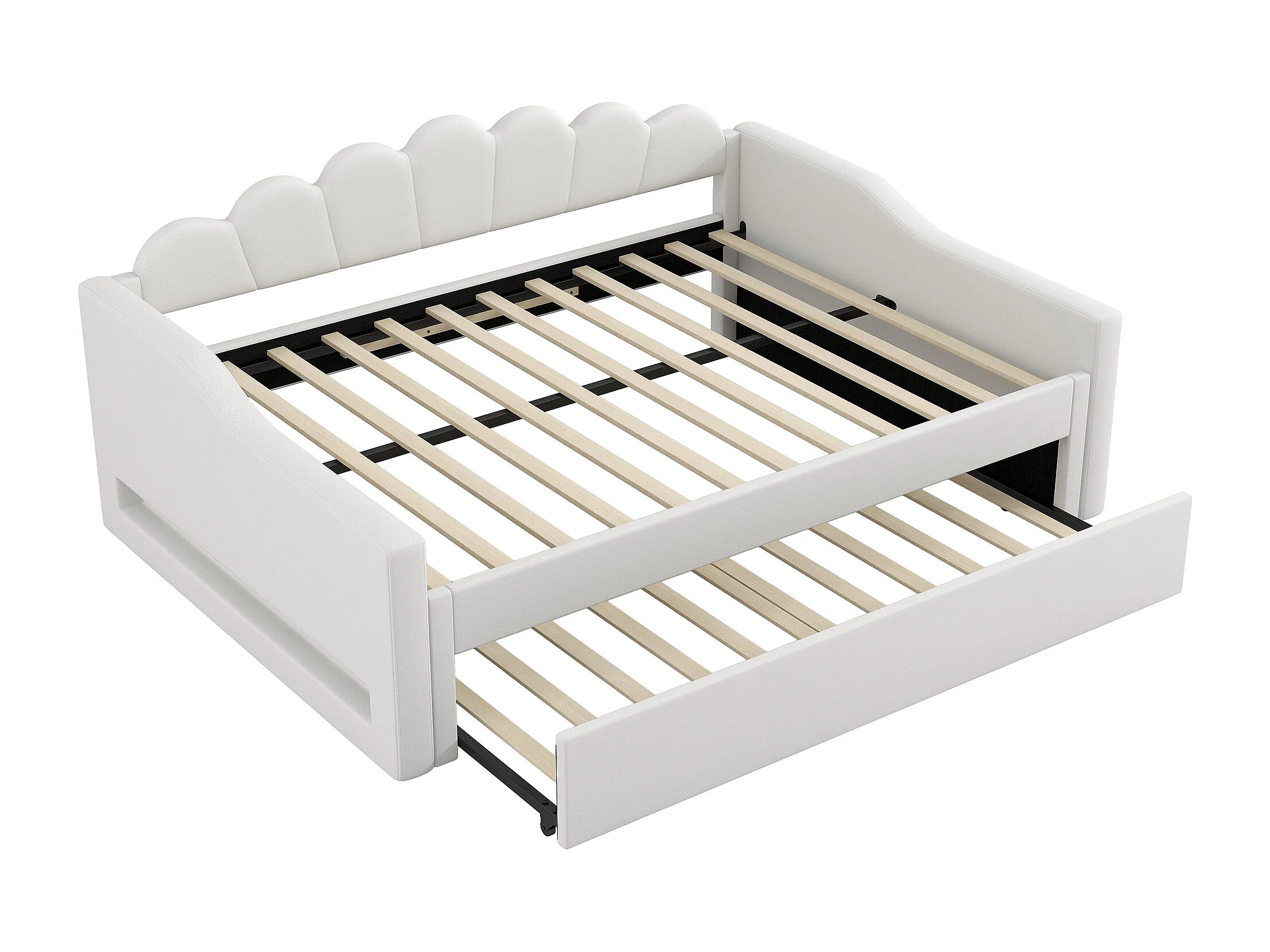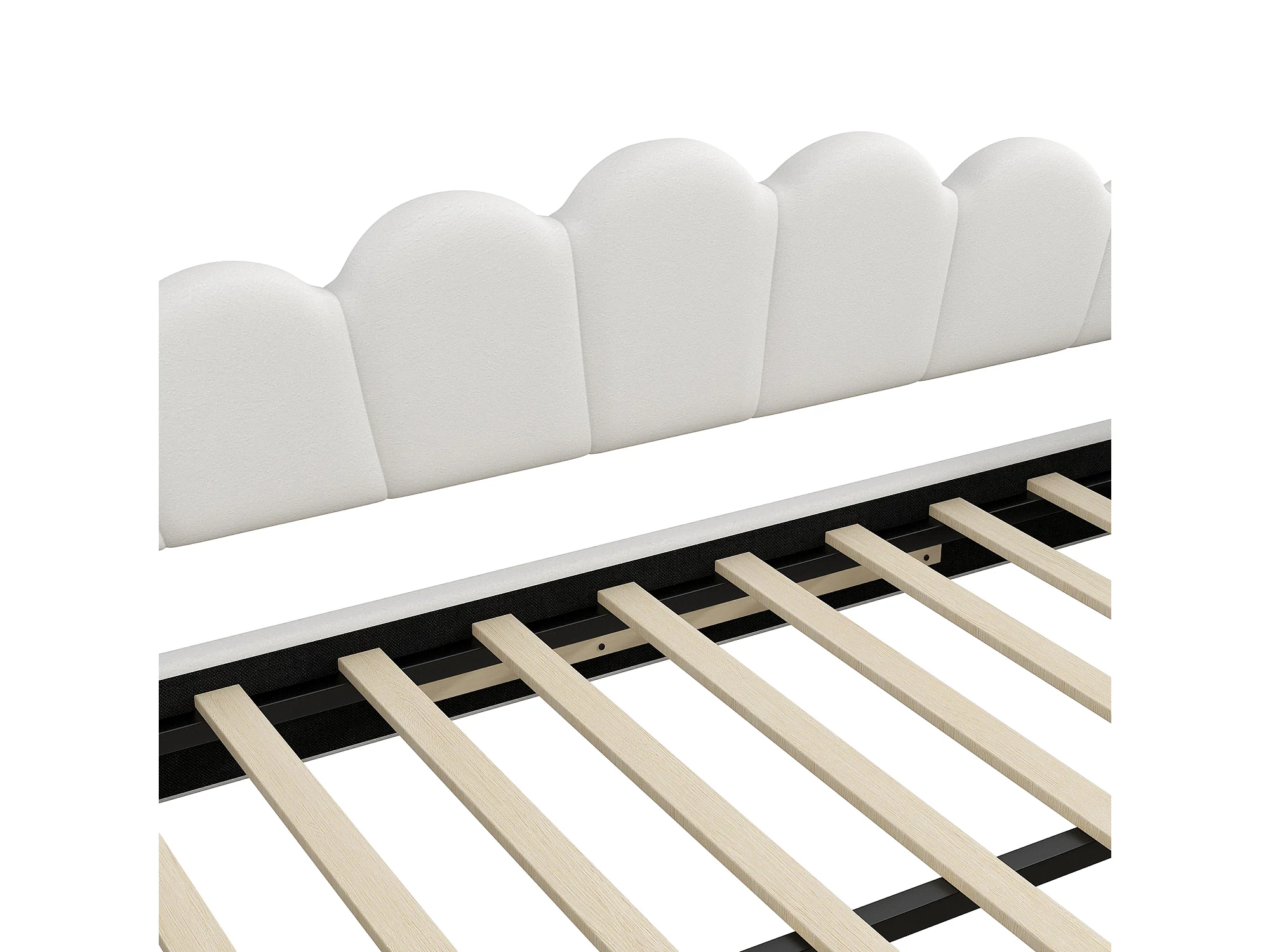 Cama nido 140×200 cm - com fita de LED - com base de ripas - MDF+linho - bege