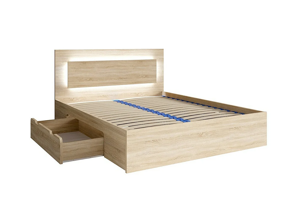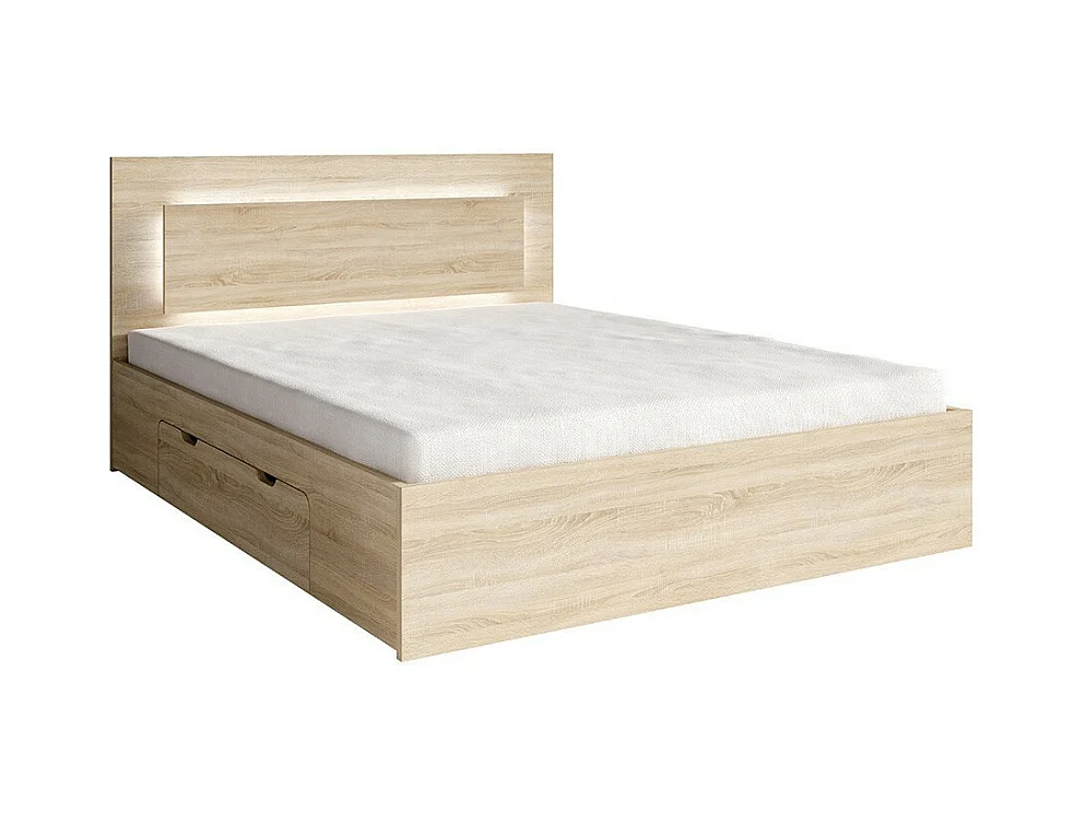 Cama NOFI carvalho Sonoma 160x200 cm com gavetas, ideal para quarto. Móvel design.