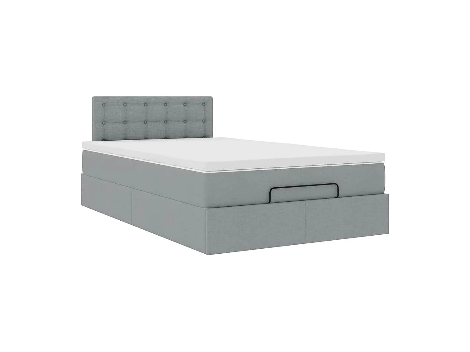 Cama otomana com colchão 120x190 cm tecido cinzento claro