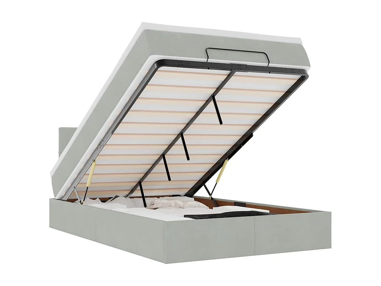 Estrutura de cama otomana com colchões cinza claro Veludo