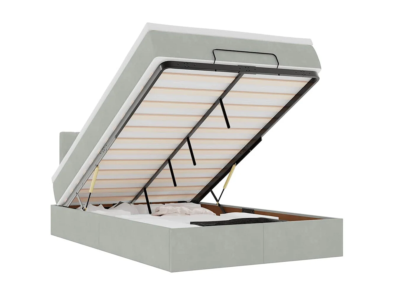 Estrutura de cama otomana com colchões cinza claro Veludo