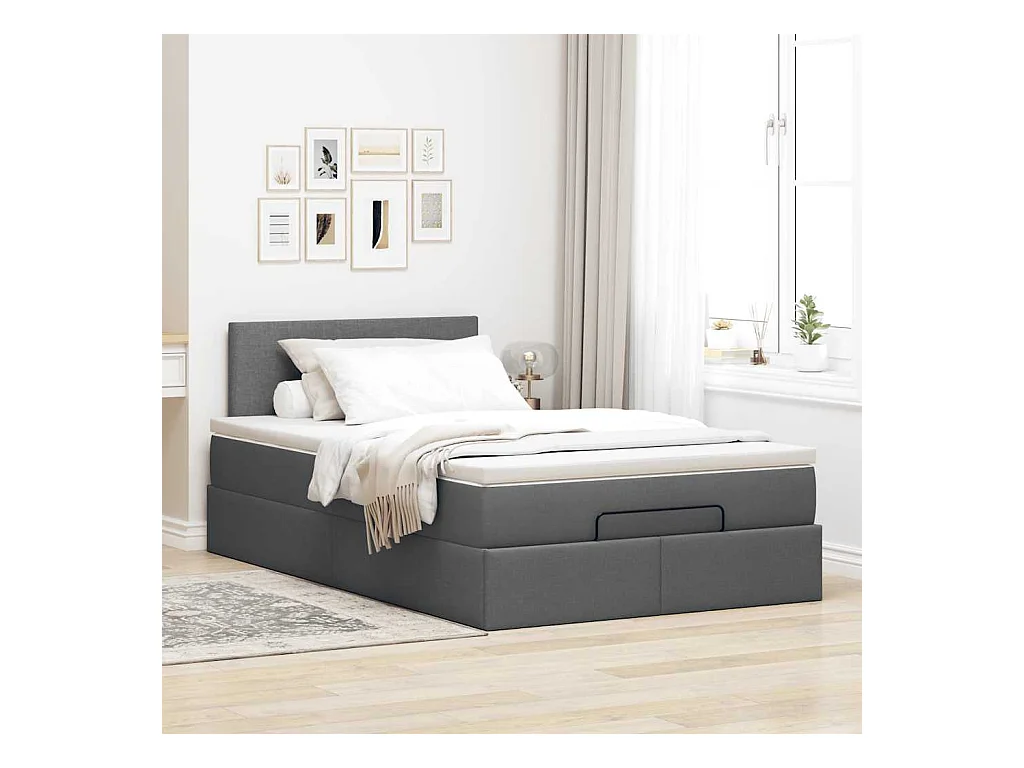 Estrutura de cama otomana com colchão cinza escuro tecido