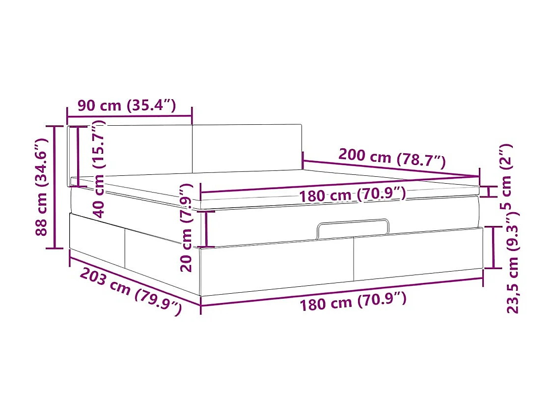 Estrutura de cama otomana com tecido azul colchão 180x200cm