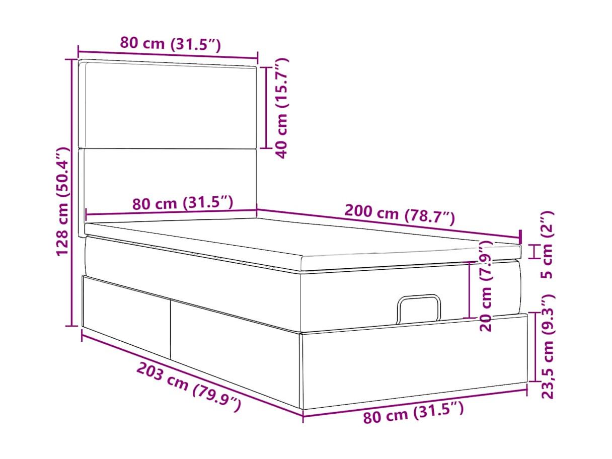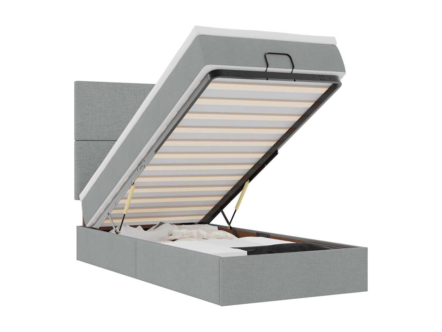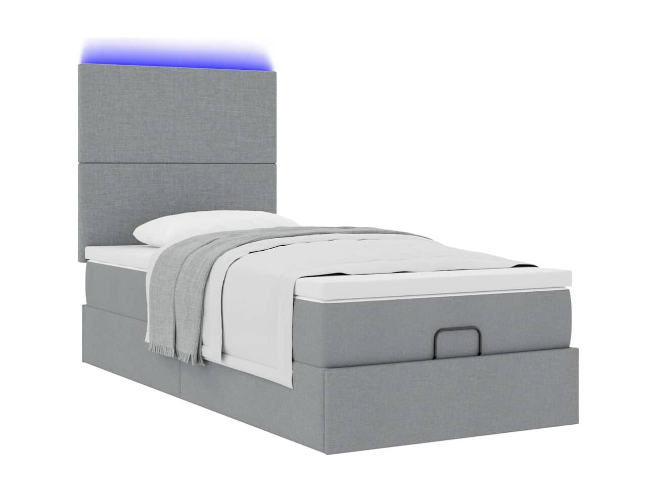 Cama Otomana com colchão & LEDs 80x200cm tecido cinza-claro
