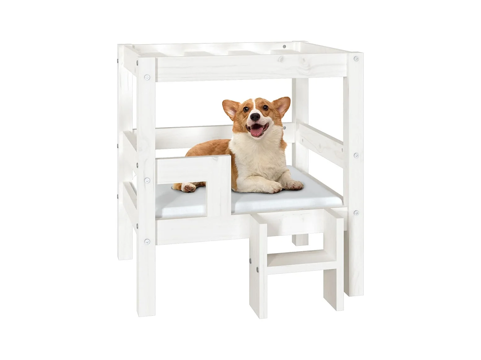 Cama para cães 101x70x90 cm madeira de pinho maciça branco PT632727