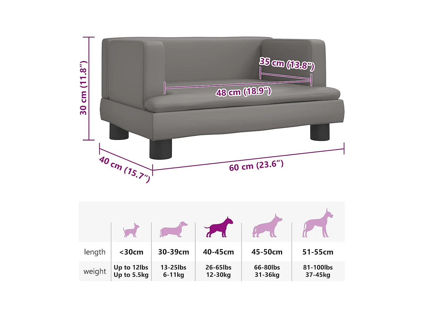Cama para cães 60x40x30 cm couro artificial cinzento