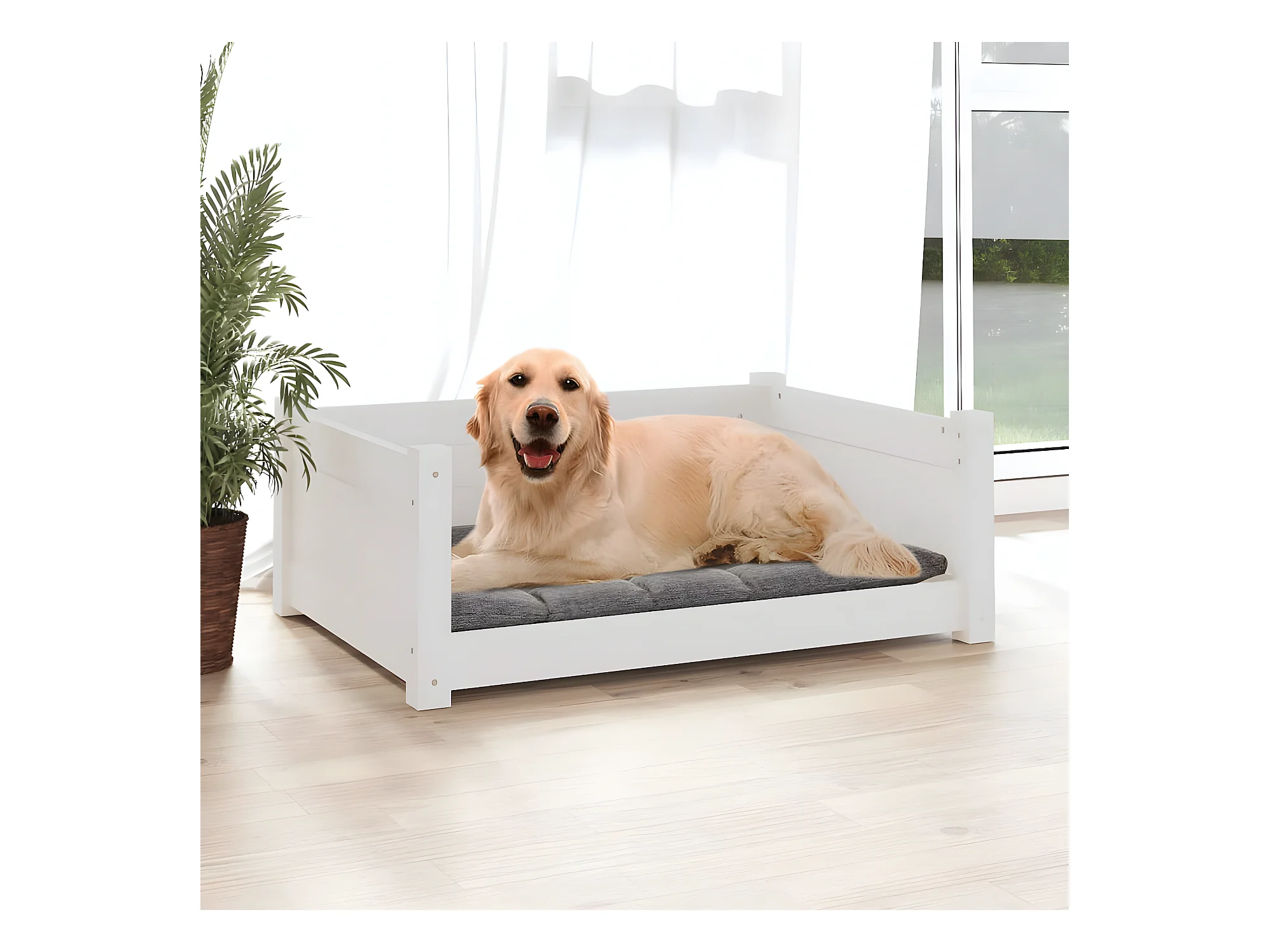 Cama para cães 105,5x75,5x28 cm madeira de pinho maciça branco PT174385