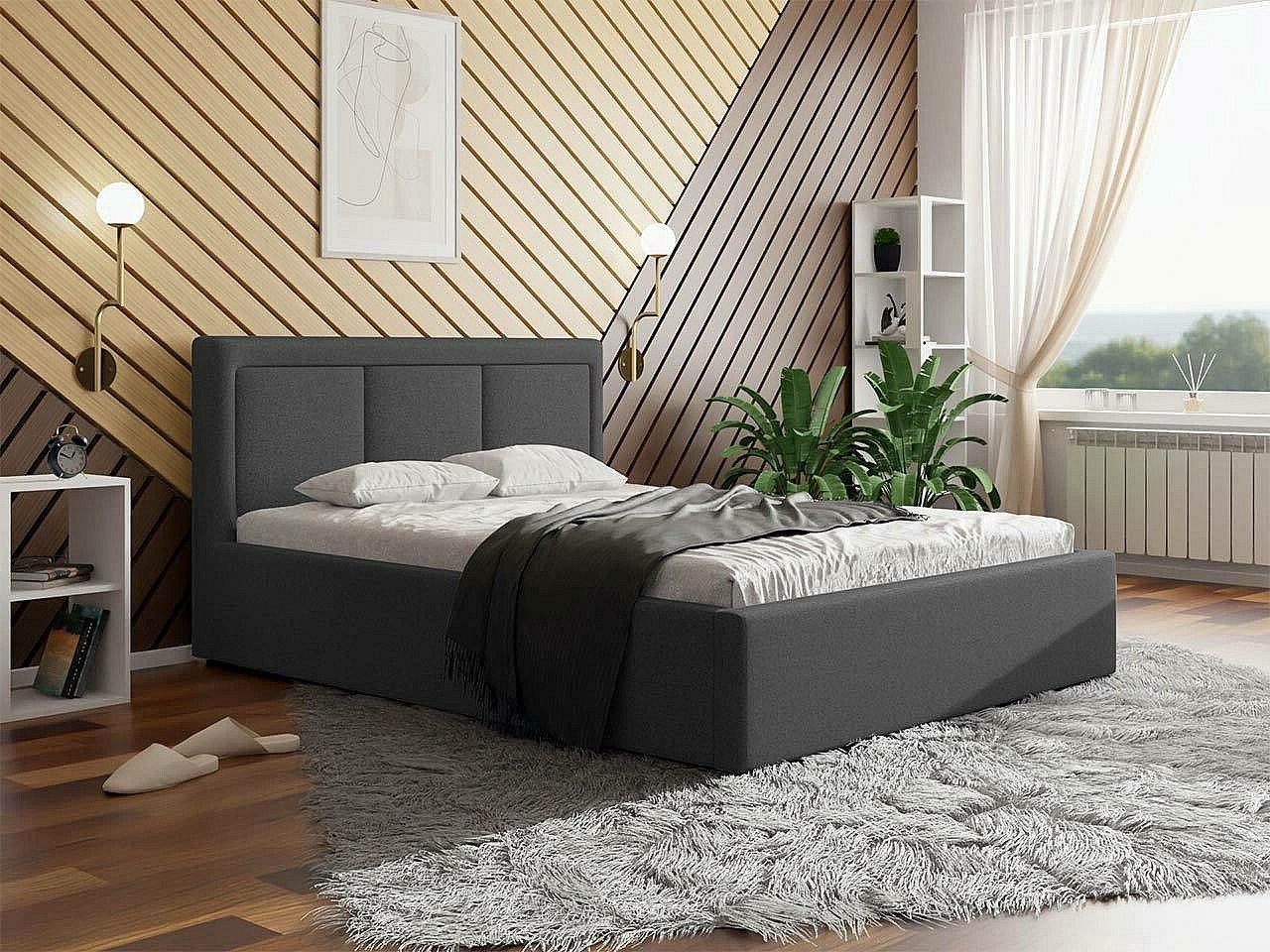Cama TrendyNest 117, Casal, Cinzento, Tecido, Estrados de cama