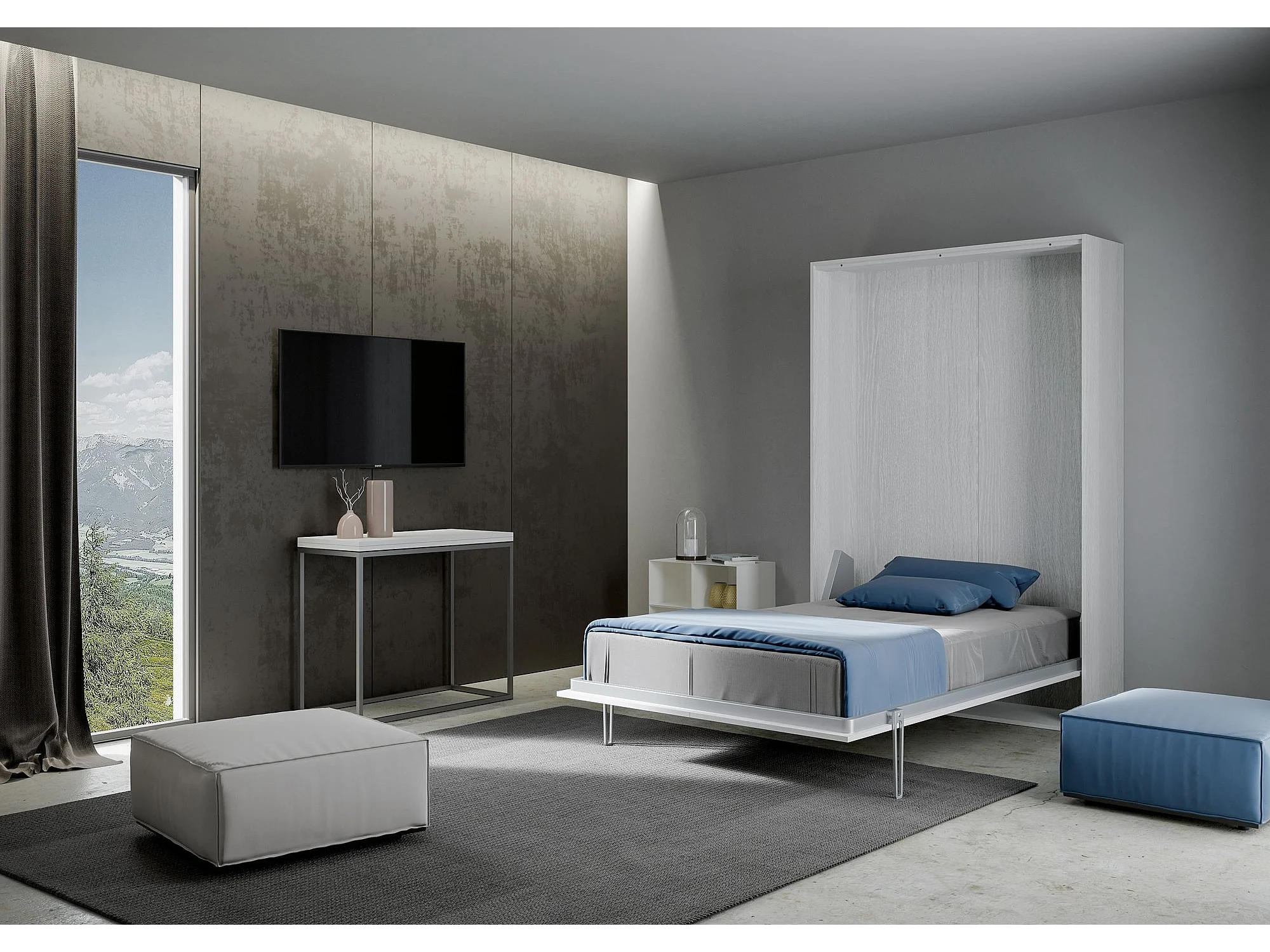 Cama retrátil 140 vertical Kentaro Cinza Branca