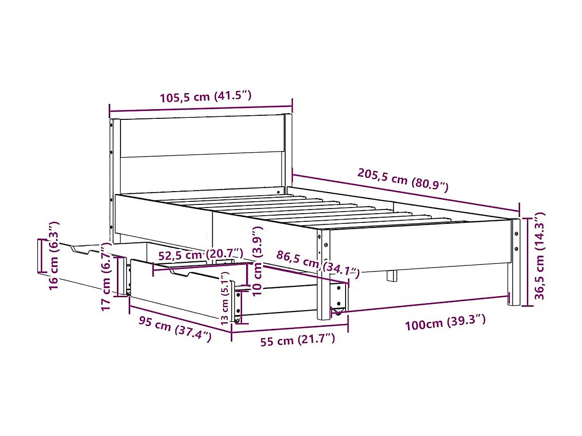Cama sem colchão 100x200 cm madeira de pinho maciça