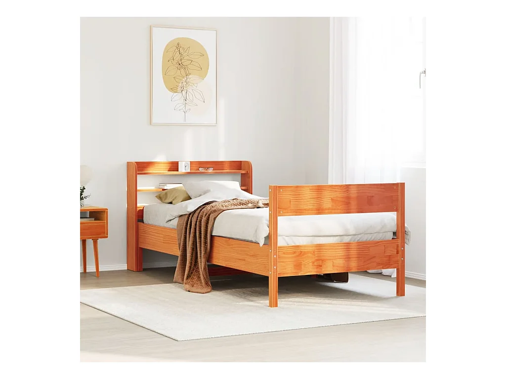 Cama sem colchão 100x200 cm pinho maciço castanho-mel