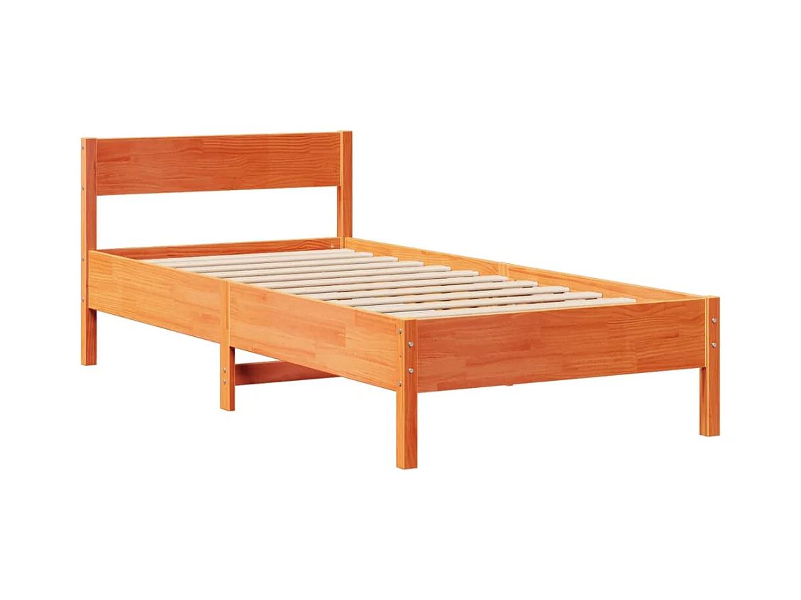 Estrutura cama c/ cabeceira 100x200cm pinho maciço castanho-mel
