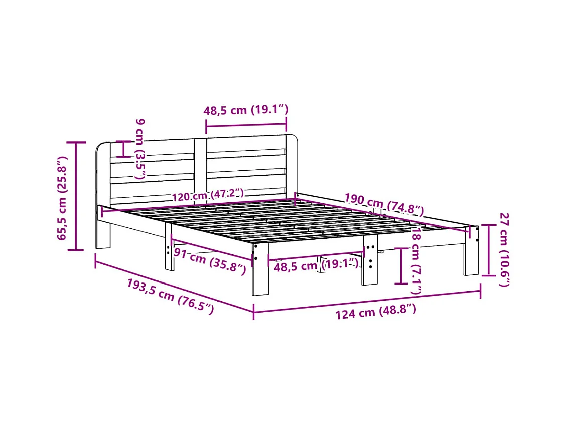 Cama sem colchão 120x190 cm madeira de pinho maciça