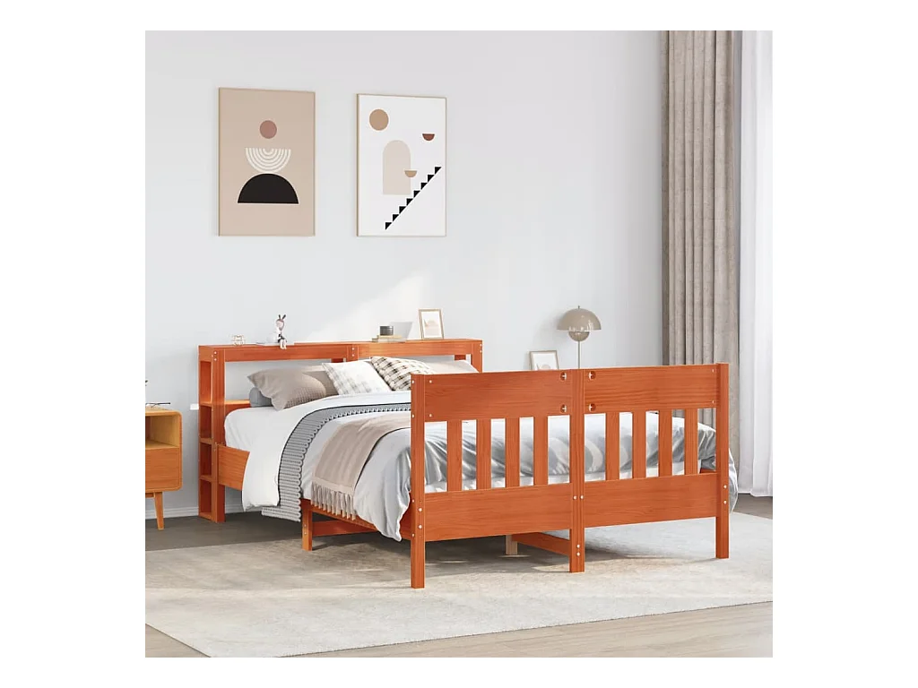 Cama sem colchão 120x190 cm madeira pinho maciça castanho-mel