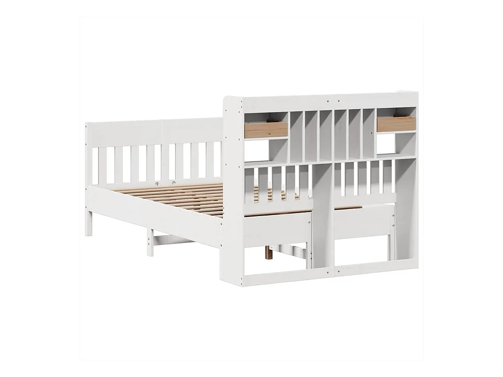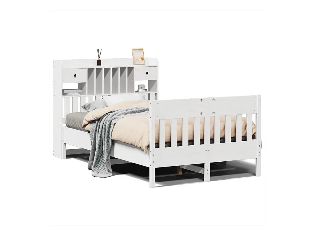 Cama com estante sem colchão 135x190 cm pinho maciço branco