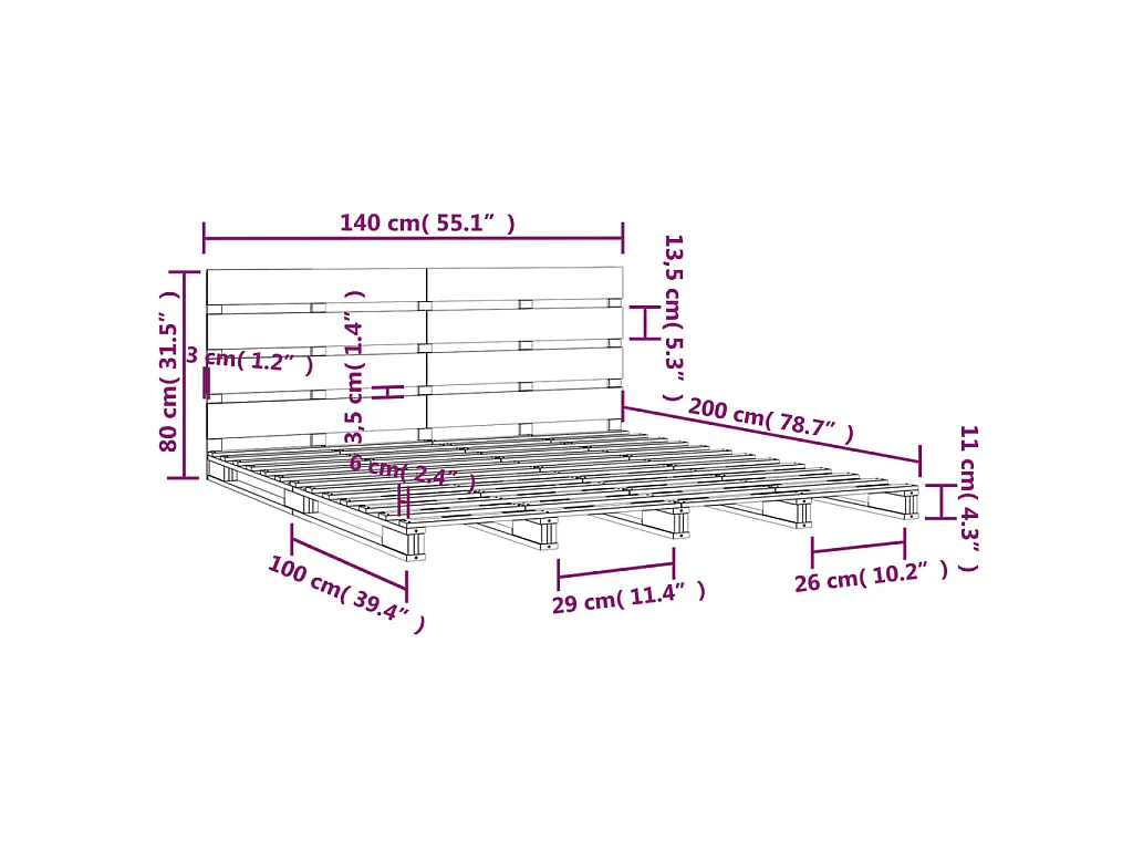 Cama sem colchão 140x200 cm madeira de pinho maciça