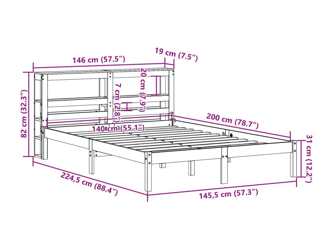 Cama com estante sem colchão 140x200 cm pinho maciço branco
