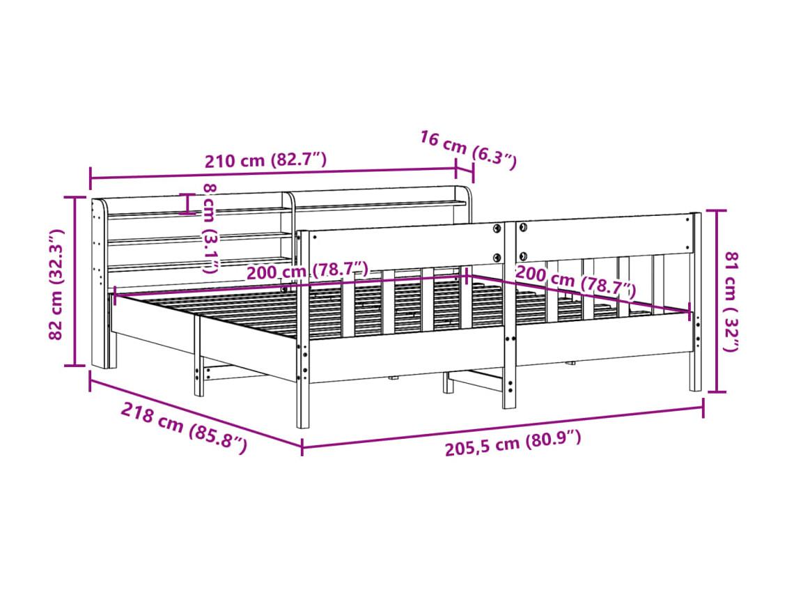 Cama sem colchão 200x200 cm madeira de pinho maciça