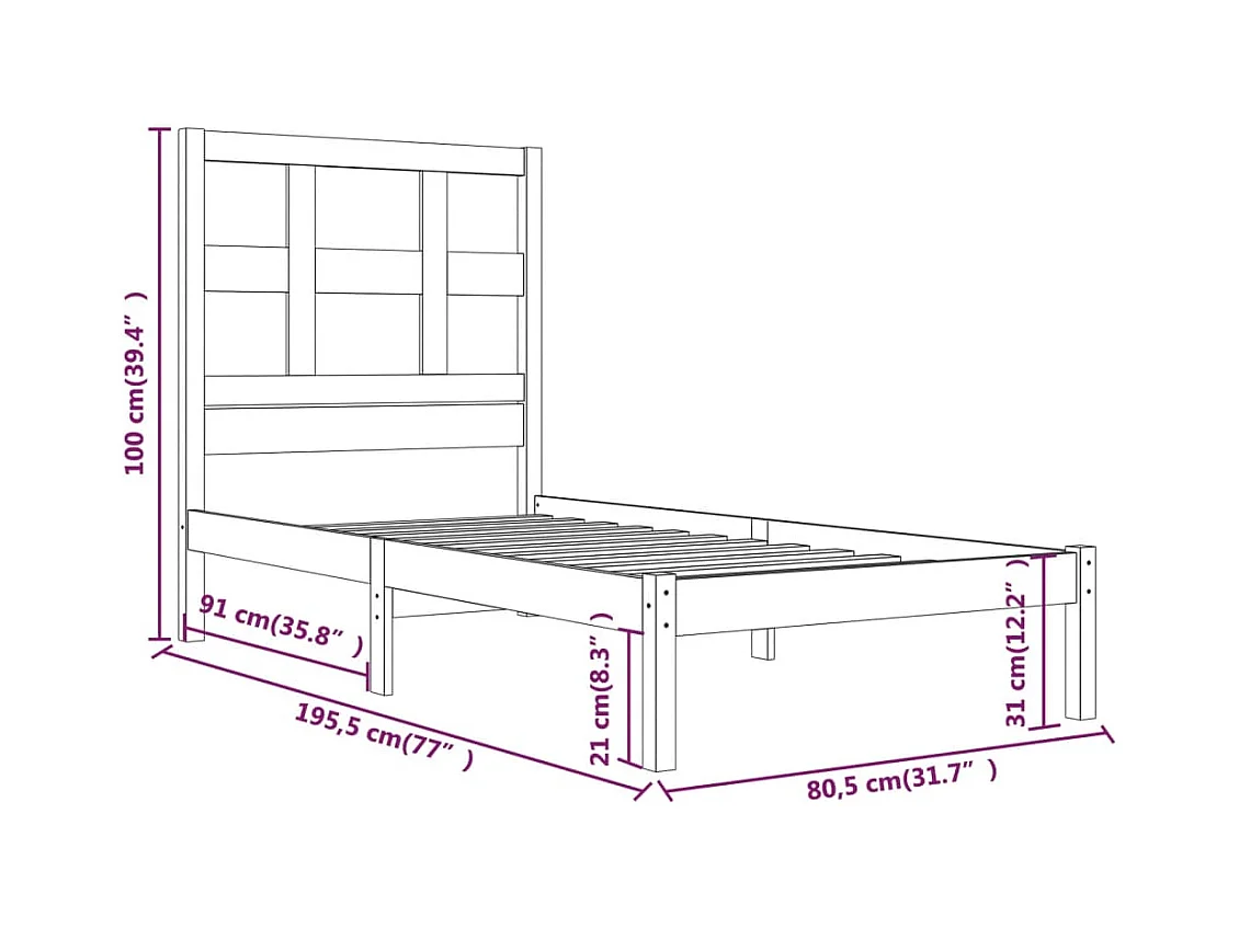 Cama sem colchão 75x190 cm madeira de pinho maciça branco