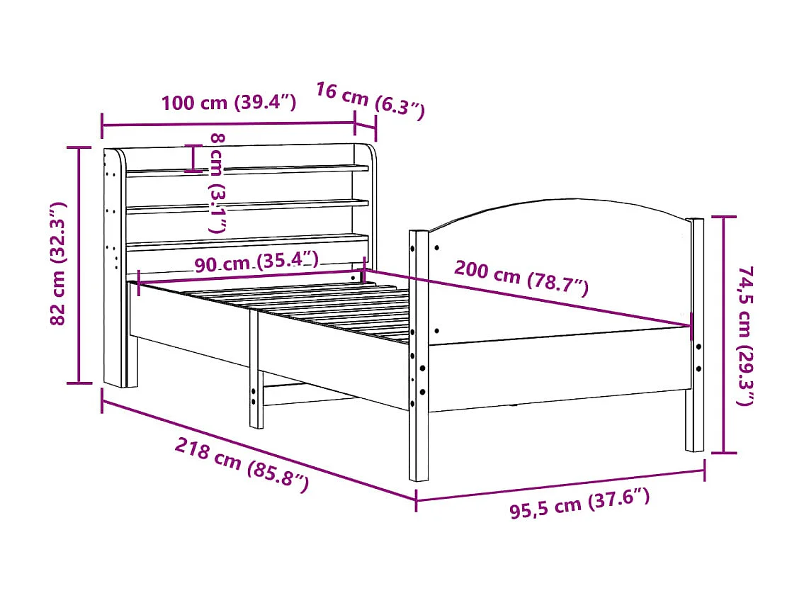 Cama sem colchão 90x200 cm madeira de pinho maciça