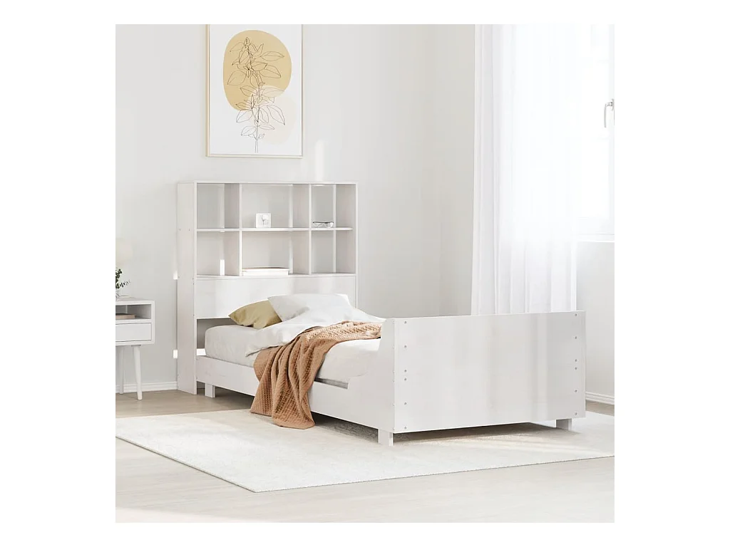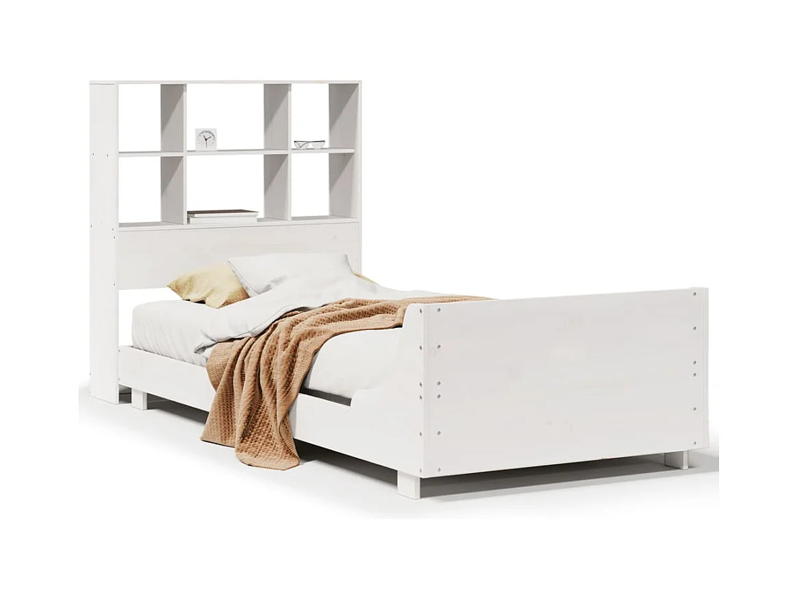 Cama com estante sem colchão 90x190 cm pinho maciço branco