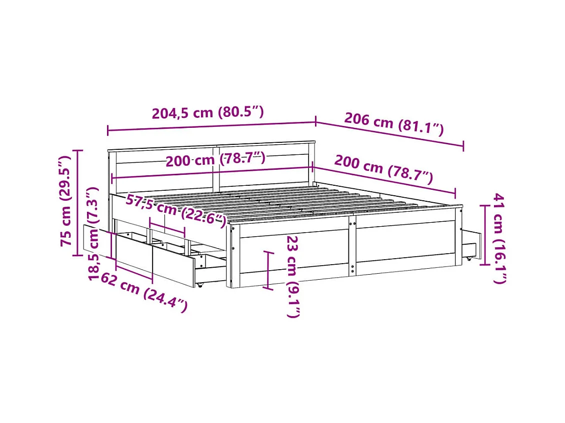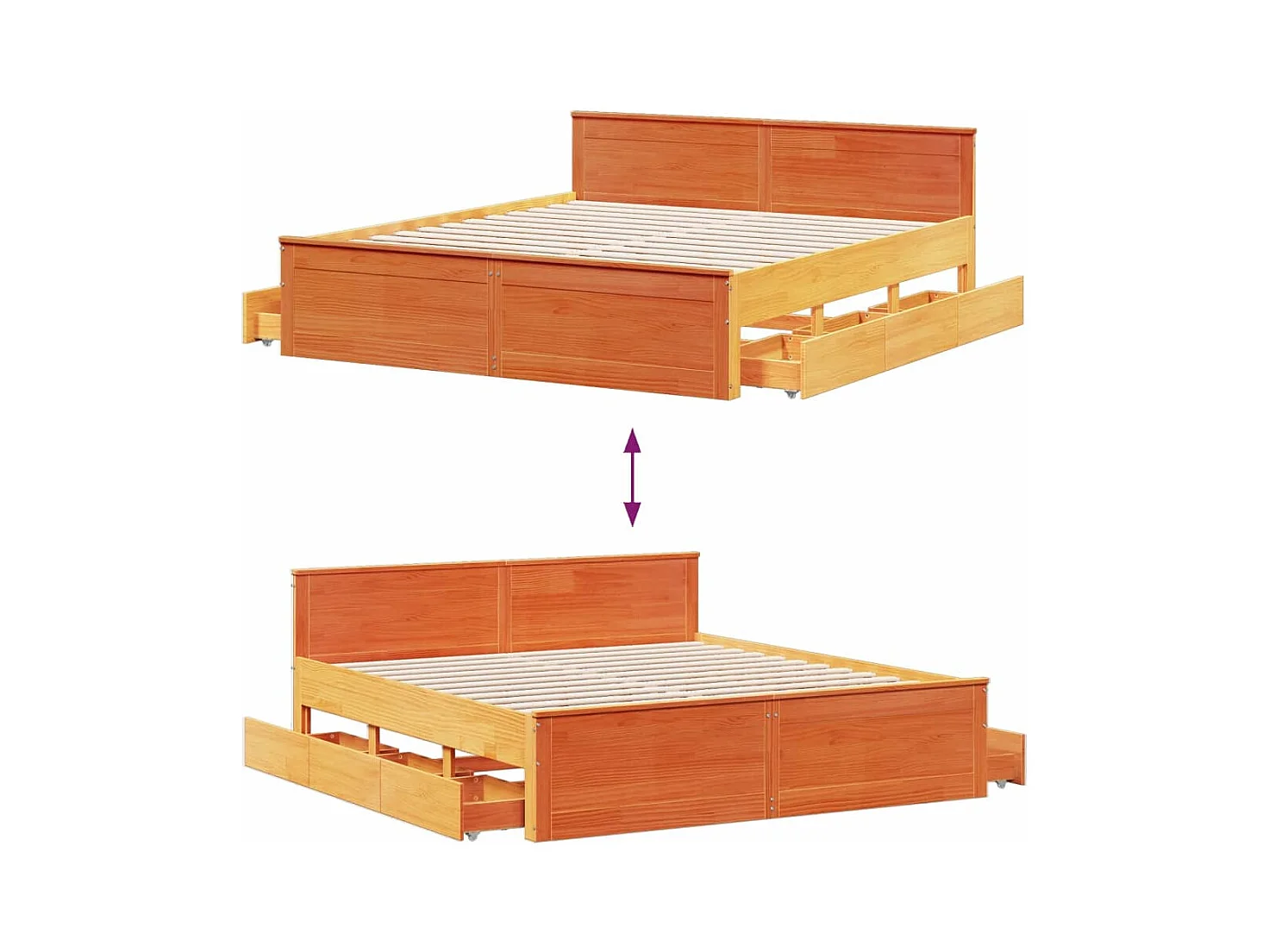Cama sem colchão com gavetas 200x200 cm madeira de pinho maciça