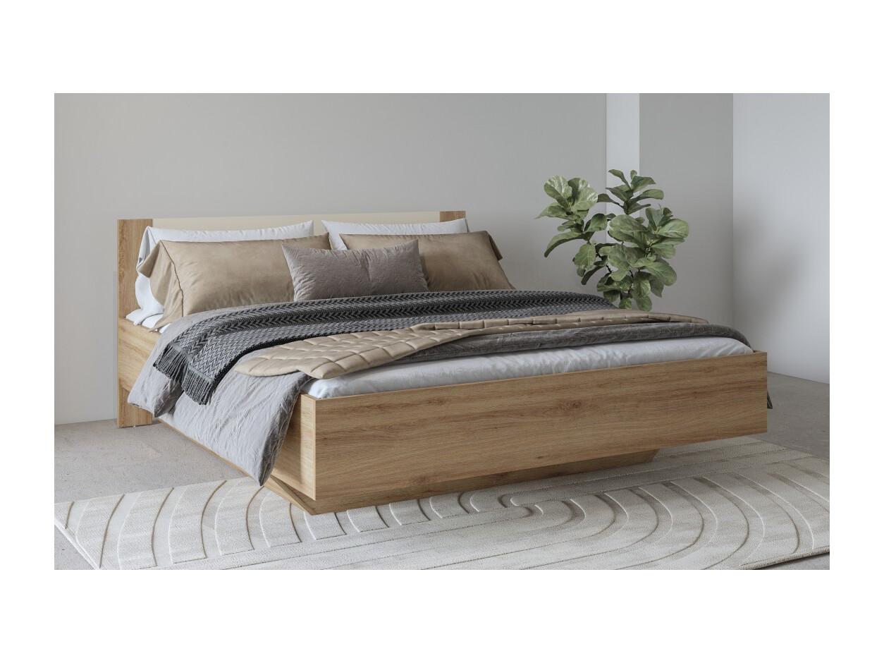 Cama VERTIGO – 160x200 com estrado incluído – Carvalho selvagem e bege areia – Pé de cama design