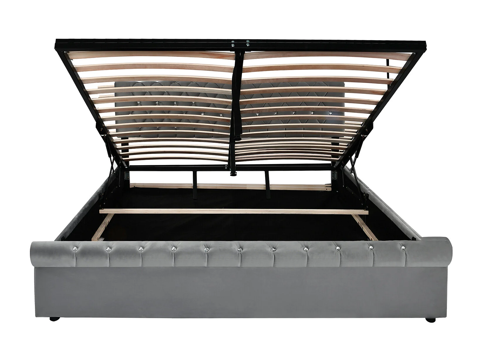 Camas estofadas 160 x 200 cm, Estrutura de cama adulto com estrado de ripas e cabeceira, Veludo, Cinza