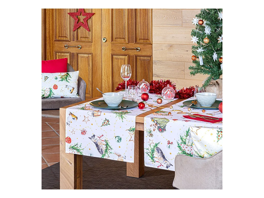 Caminho de mesa de Natal Naf Naf Puppies Xmas multicolorido
