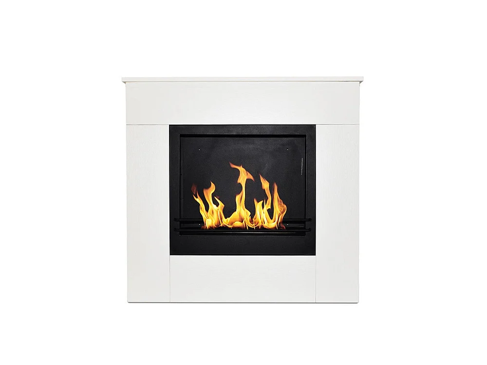 Lareira de chão a bioetanol Michelangelo 96x36x90h em madeira branca, fabricada na Itália