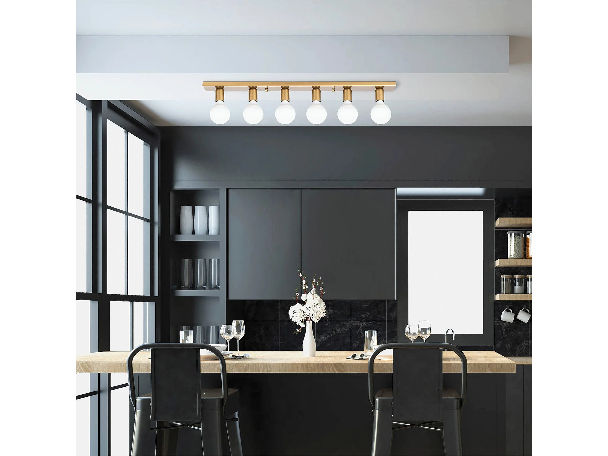 Candeeiro de teto nórdico Mulen ouro envelhecido com 6 bolas de vidro 6xE27