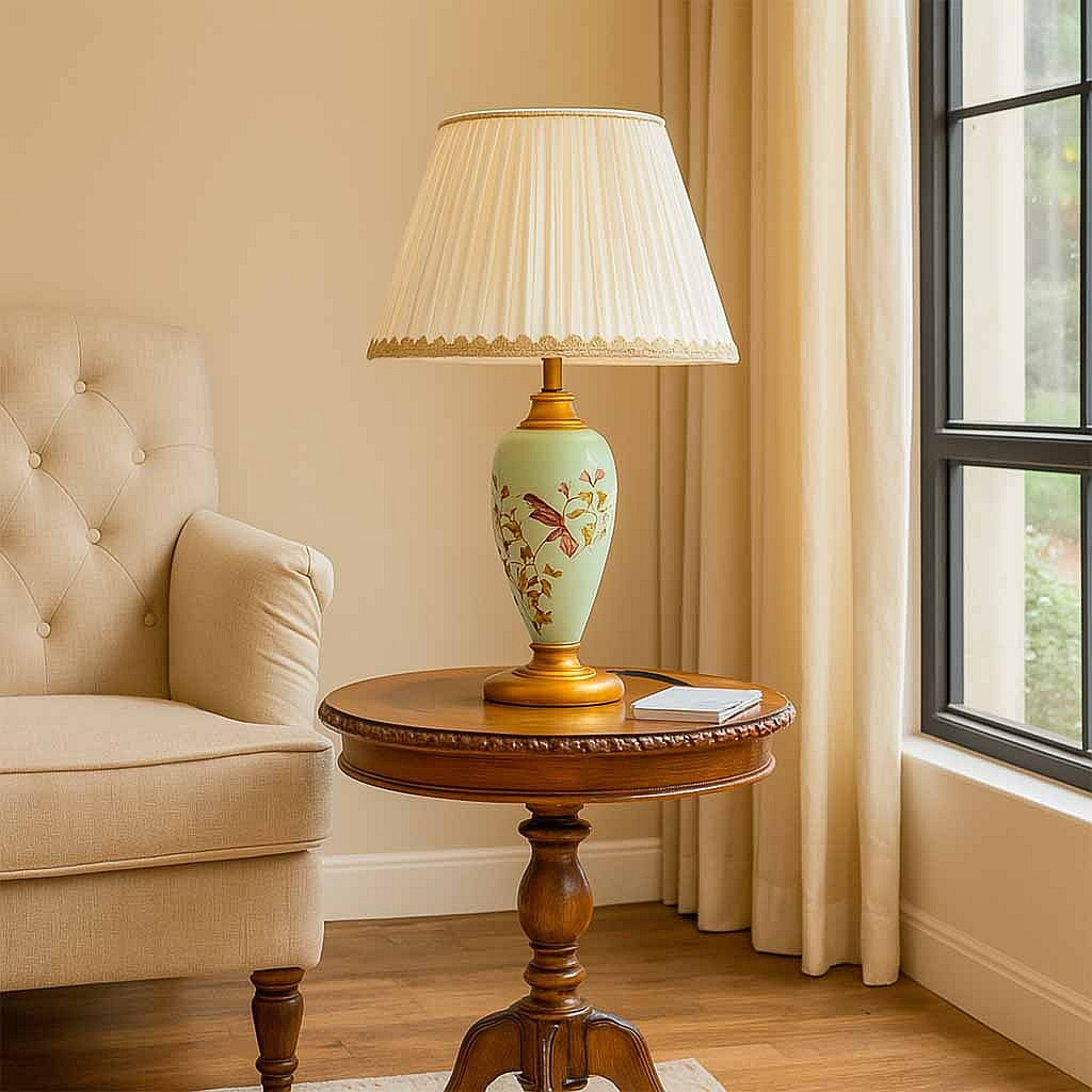 Candeeiro de mesa CERAMIC estilo clássico - E27 15W - Altura 63,5cm - candeeiro de mesa em algodão ø38 cm - IP20 - cabo de 2 m - on&off - cerâmica e ouro