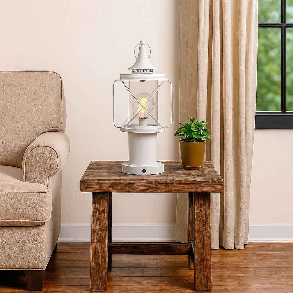 Candeeiro de mesa em metal branco com luz LED 21x18,5x46,5/52,5h cm