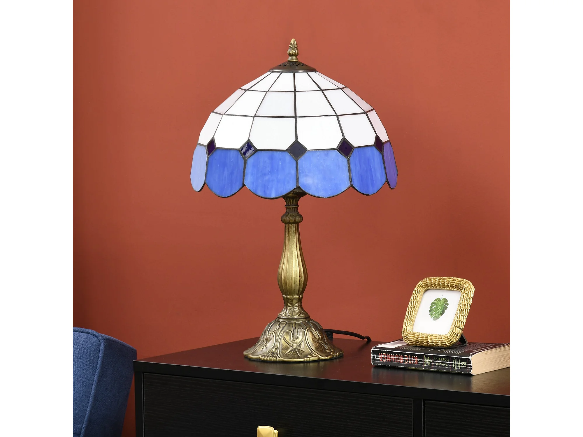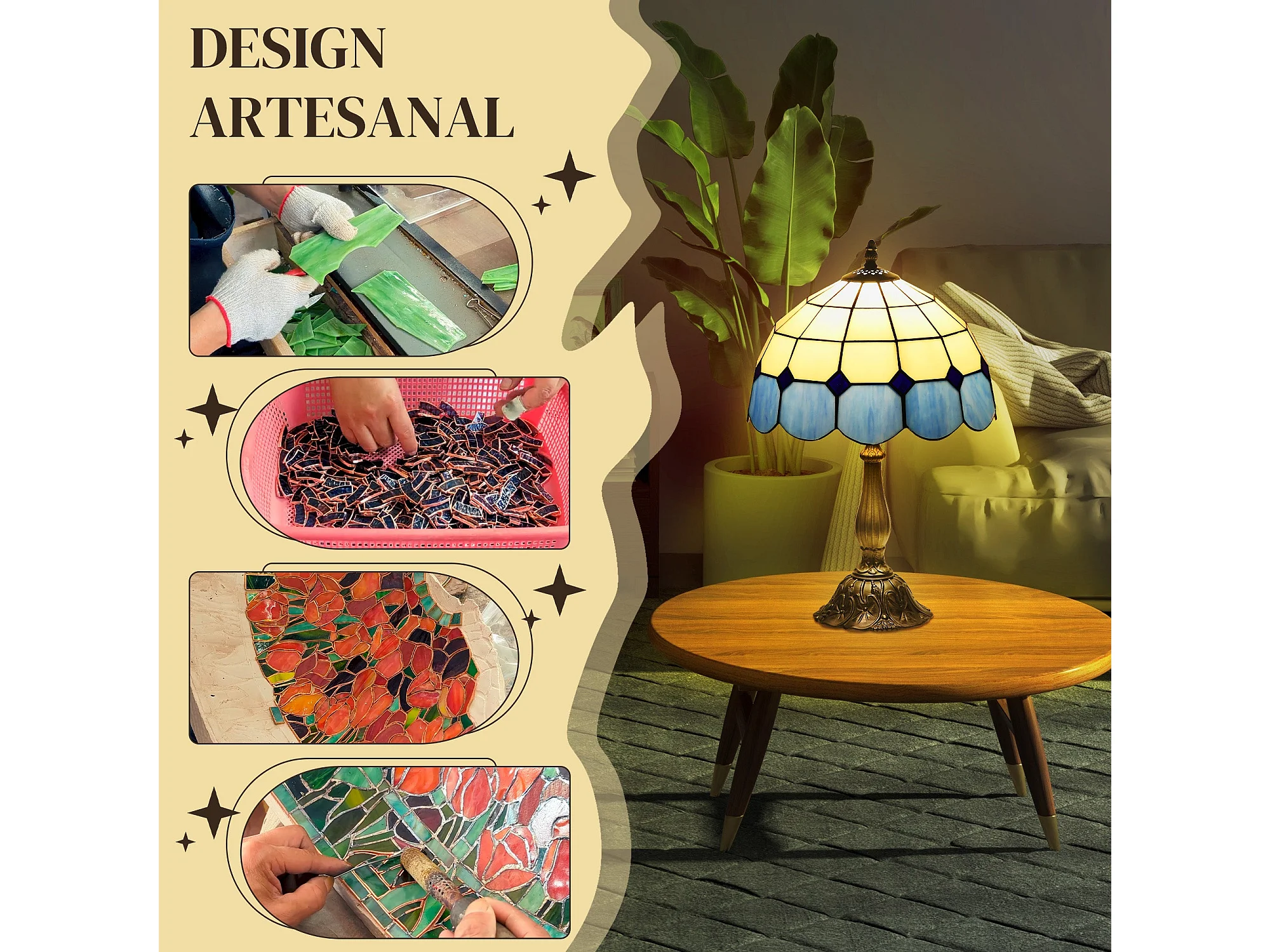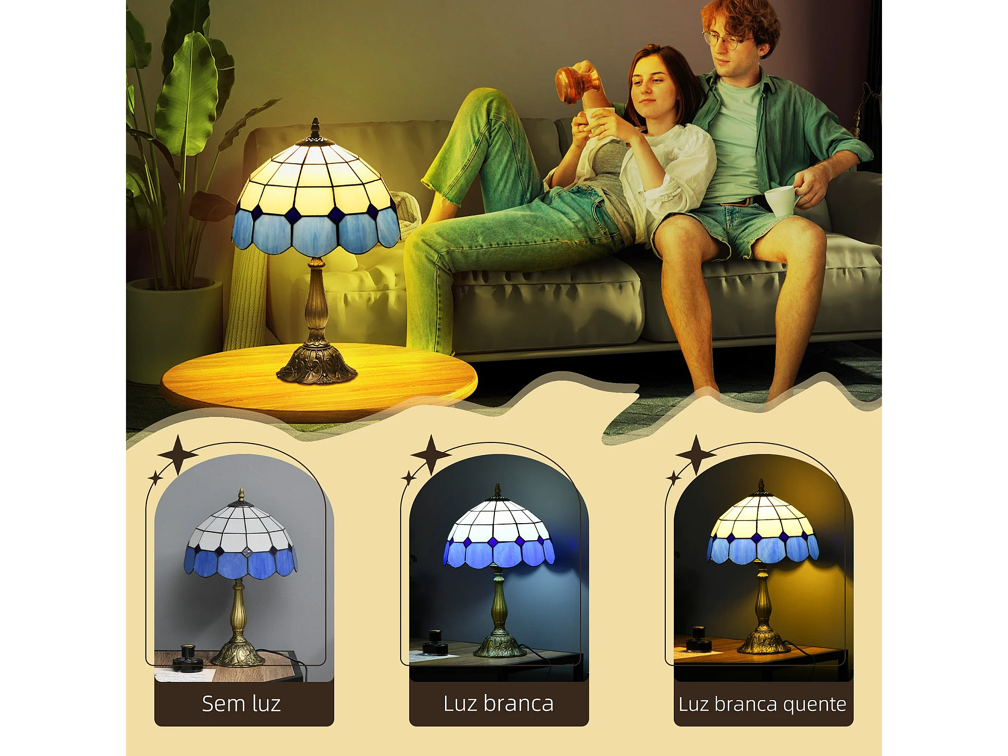 Candeeiro de Mesa Tiffany Artesanal Azul para Decoração Elegante de Interiores